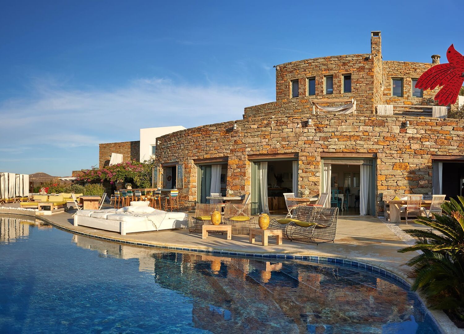 A disappointment for Greek hospitality. We visited the location with my family on the occasion of a dinner party of a baptism, along with many international friends who travelled from several countries around the world to honor the hosts. Sadly, we noticed that our hosts had to become the planners and facilitators themselves because there was absolutely no experience- or even will?- on behalf of the hotel, even though I suppose our hosts chose the specific expensive location expecting to receive the respective level of service in return. The arrival of us guests was a mere nightmare: the hotel is situated on the top of a cliff and the sole access is by a narrow dirt road full of rocks and potholes, where there is space for just 1 car to pass... Τhere was no prediction by the hotel for parking or even regulating the traffic in some way to assist guests... Everything was rolling extremely slow, with dinner being served at 22.30 (!!???), during which, the bar closed (!!??)- obviously due to shortage of staff. On top, the awfully rude lady in charge made a very bad impression to all of us guests, regardless of the attempts of the limited staff who were trying to do their job. Overall a really disappointing experience, felt sorry for our hosts who hoped to offer us a warm high-standard treatment but received such a low quality of service instead. A nice view, a sunset and an infinity pool can be found everywhere in all Mediterranean countries. What makes the real difference is the quality of service that you offer, and this was definitely a disappointment of Greek hospitality.