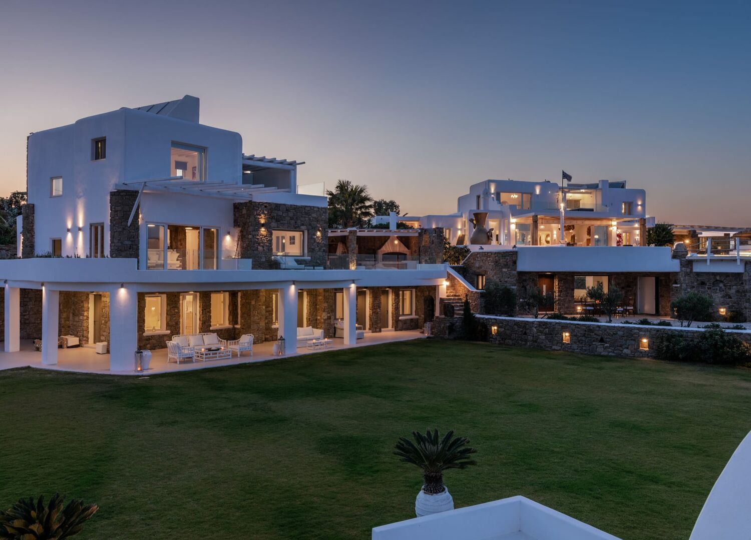 Amidst the panoramic views of the Aegean and pristine natural settings, you'll find expansive living, dining, and entertainment areas strategically appointed around sparkling pools.