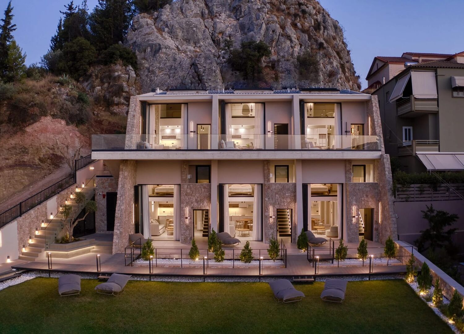 Anima Deluxe Suites is a luxurious hotel located in Nafplio, offering brand-new apartments with modern amenities and a 5 key ranking certificate from NotifyBusiness. Situated next to a forest area on the hill of Evangelistria, the hotel provides panoramic sea views and is conveniently close to the center of Nafplio and historical monuments. With its ideal location and high aesthetic standards, Anima Deluxe Suites is the perfect destination for a relaxing and comfortable stay.