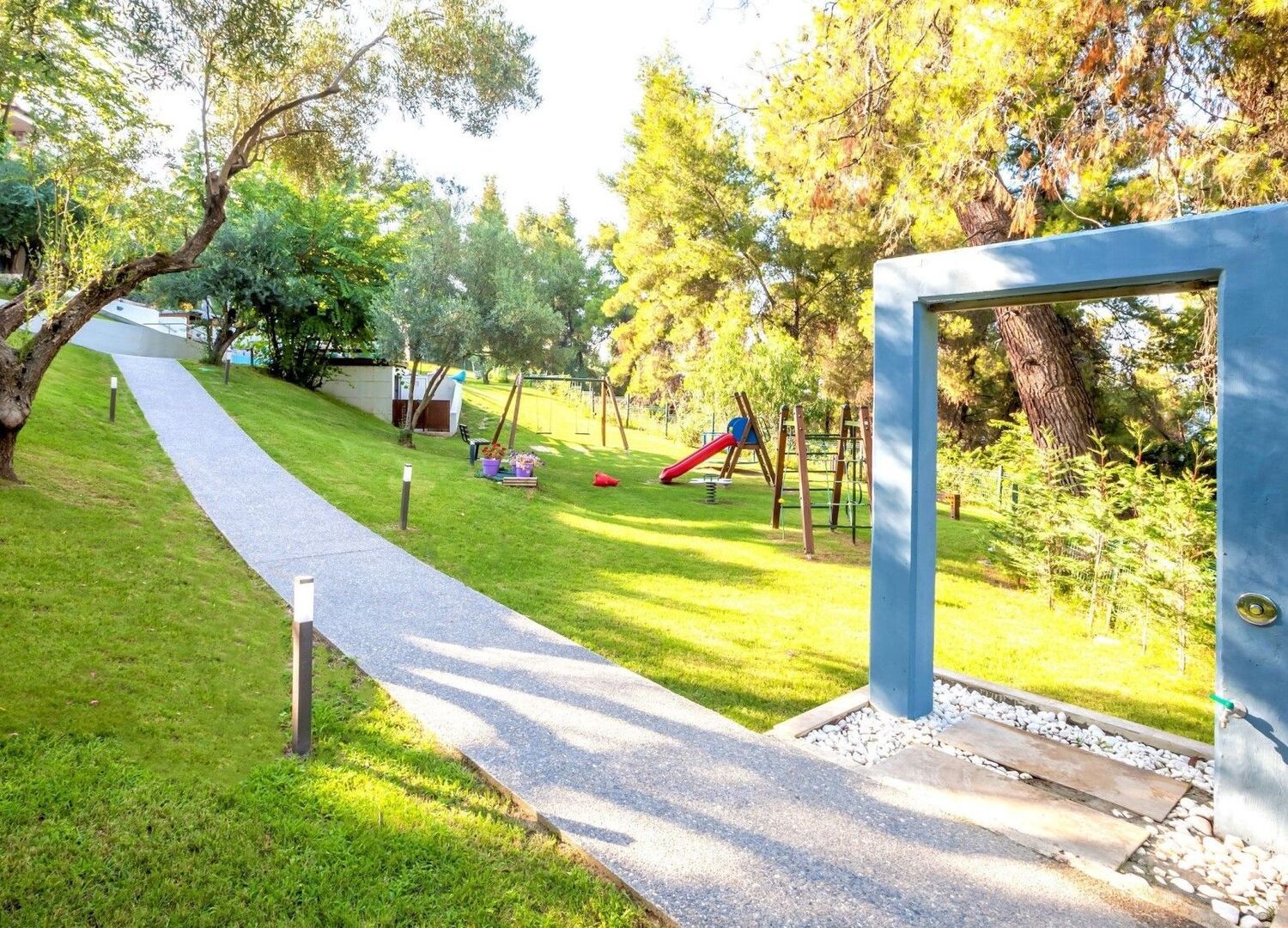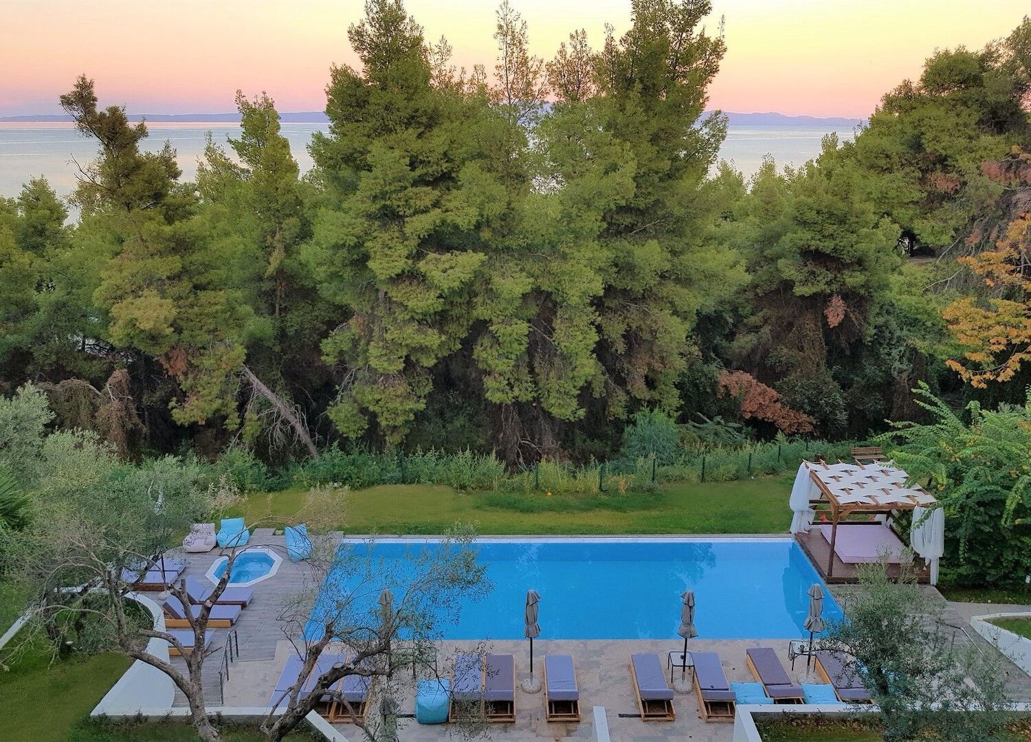 A very unique hotel nestled in the heart of pine and olive trees; it truly makes you feel like you’re immersed in nature! The staff is absolutely wonderful; you’ll be warmly greeted by kind, always-smiling ladies who genuinely care about your experience. Guest satisfaction clearly comes first here. The pool is lovely, the restaurant is quite decent, and everywhere you look, it’s green and peaceful, with the soothing sound of cicadas in the background. A special shoutout to the excellent breakfast — fresh, generous, and beautifully served. 👌🏻 Just a few heads-up to help future guests have an even smoother stay: • Room sizes: The double rooms are on the smaller side (around 18 sqm), so if space matters to you, consider booking a family room (approx. 28 sqm) for more comfort. • Beach access: To reach the sea, you walk through a small forest; it’s a lovely experience, but it might be a bit tiring for some. The beach itself is more natural and untouched, perfect for nature lovers. Just note that there’s no service down there, so you’ll need to bring your own drinks or snacks. • Mosquitoes: As expected in such lush surroundings, mosquitoes are around. A quick spray makes all the difference; without it, you might be a bit too popular with the local wildlife 😄 Overall, I strongly recommend this place, thanks to the wonderful staff who made our stay so comfortable and fun. Would definitely come back!