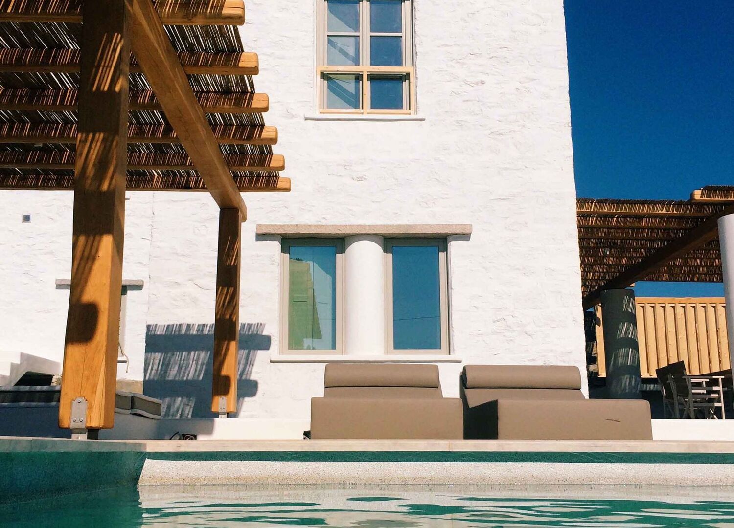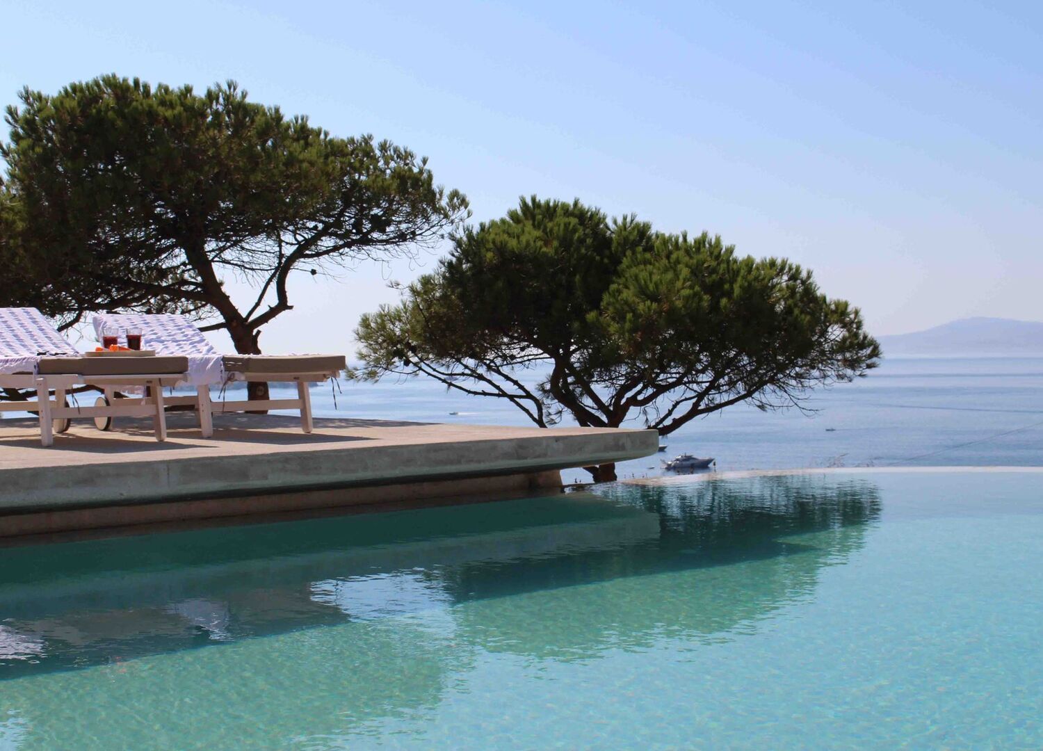 On the island of Mykonos, where the white of traditional Cycladic architecture meets the Aegean blue, we have created Cloud Blue, a vacation retreat situated on an ancient rock formation overlooking the sea. Cloud Blue is a 5 minute walk from the enchanting Mykonos town, also known as Hora. It offers a combination of elegant design and breathtaking views and is located on a charmed piece of land with a rich family history of archaeology and Island mythology.
