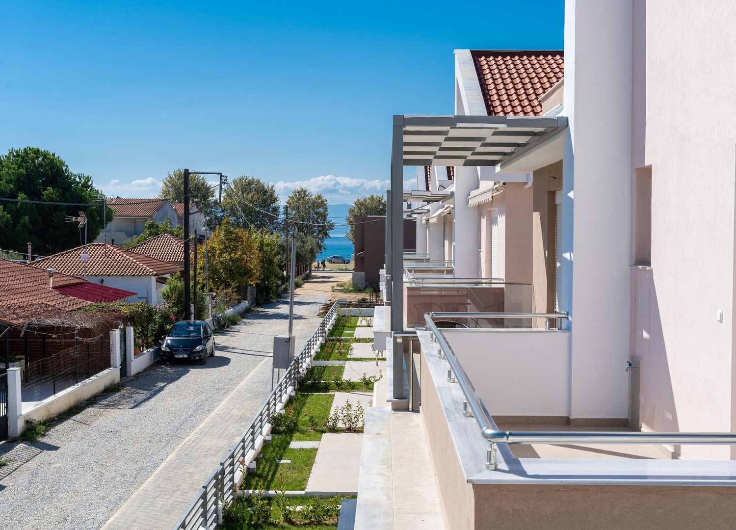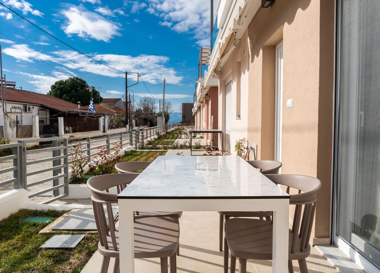 The Dionysos Residential Complex offers luxurious triplex villas with stunning side sea views just steps away from the beach in Kavala - Paralia Ofriniou. The modern houses are beautifully designed with earthy tones and provide all the amenities for a unique holiday experience.