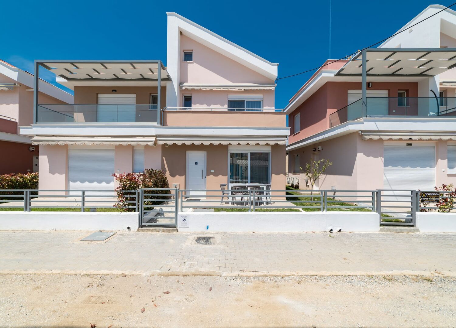 Dionysos Residential complex offers private triplex villas with imposing beauty and unobstructed side sea view just 70 meters away from the beach. They are luxurious houses with strong modern character where earthy colours dominate. In a modern residential environment, perfectly harmonized with the nature of the area, the complex provides all the advantages for unique holidays!