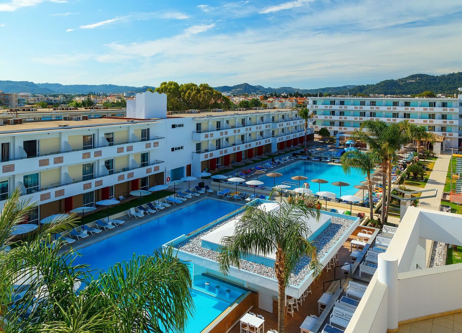 Dodeca Sea Resort Rhodes is a luxurious 5-star hotel located on the beach of Ialyssos village, just 8 km from the town of Rhodes and 5 km from the International Airport. The hotel is perfect for couples and families, offering 2 outdoor swimming pools for adults, a pool for children, waterslides, a spa, and a gym. The spacious rooms feature balconies with garden, pool, or sea views, and amenities such as satellite TV and air conditioning. Guests can enjoy buffet meals at the main restaurant, traditional Greek cuisine at the A La Carte restaurant and Snack Bar, and drinks at the various on-site bars. The hotel also offers an Animation Programme, mini-market, 24-hour reception, sports facilities, and free Wi-Fi and parking.