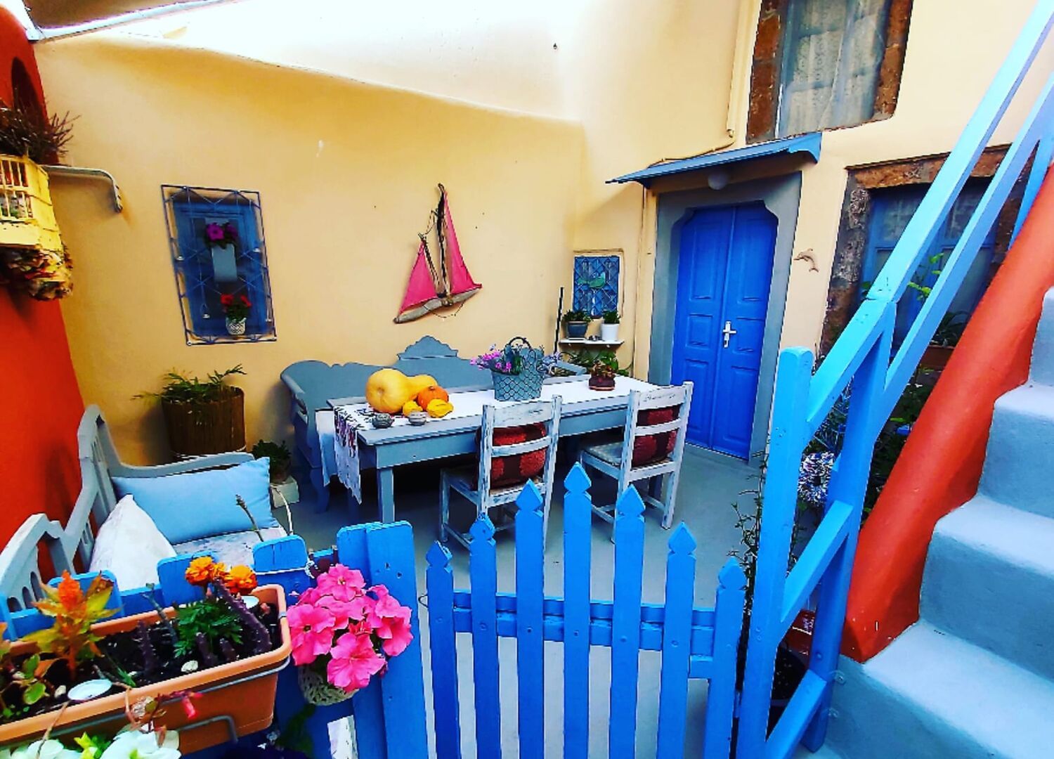 Emmantina Houses Santorini is a traditional accommodation located in Messaria, Santorini. The renovated houses offer modern facilities while keeping their traditional style. Each house is equipped with air-conditioning, a kitchen, TV, and a nice yard for relaxation. Traditional breakfast is served on site and guests can also enjoy traditional food by ordering in. The location is convenient, with shops, markets, and other services nearby. The houses are just 2km away from Fira and the airport, as well as 200 meters from Monolithos beach. Free Wi-Fi is provided and the building consists of four separate accommodations.