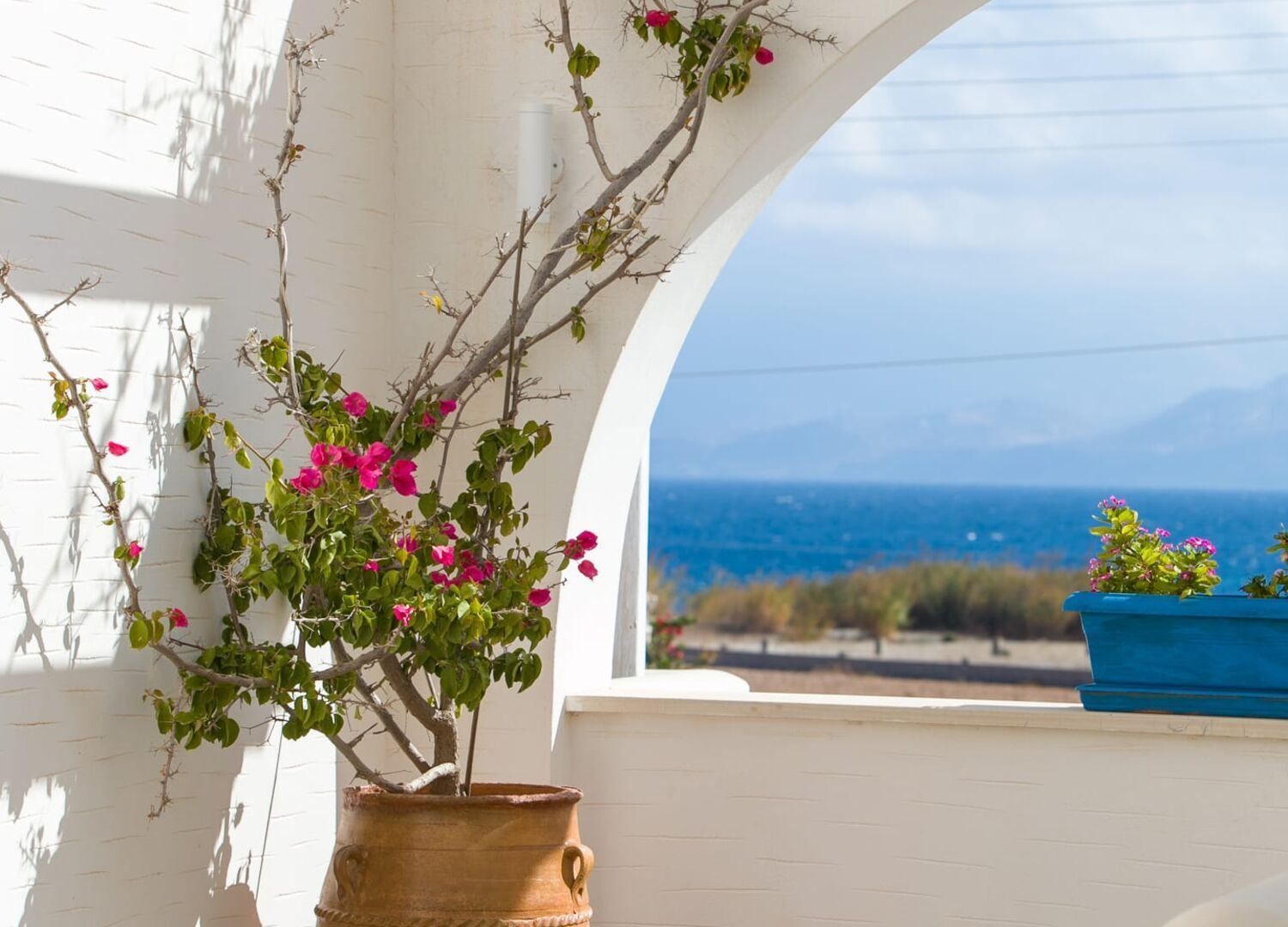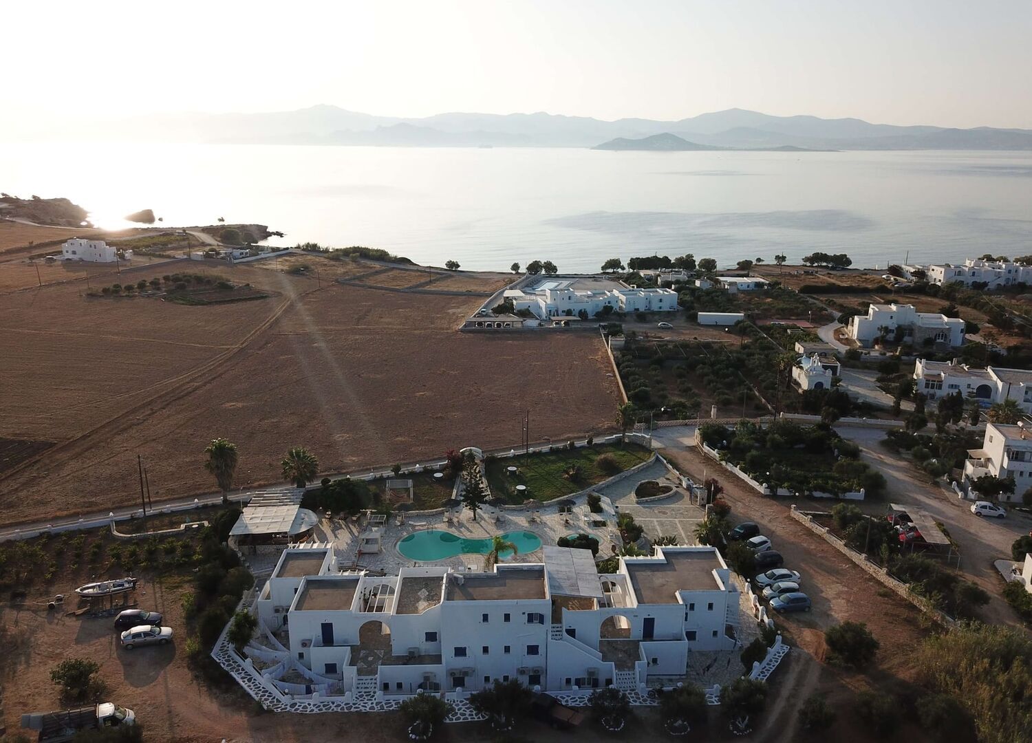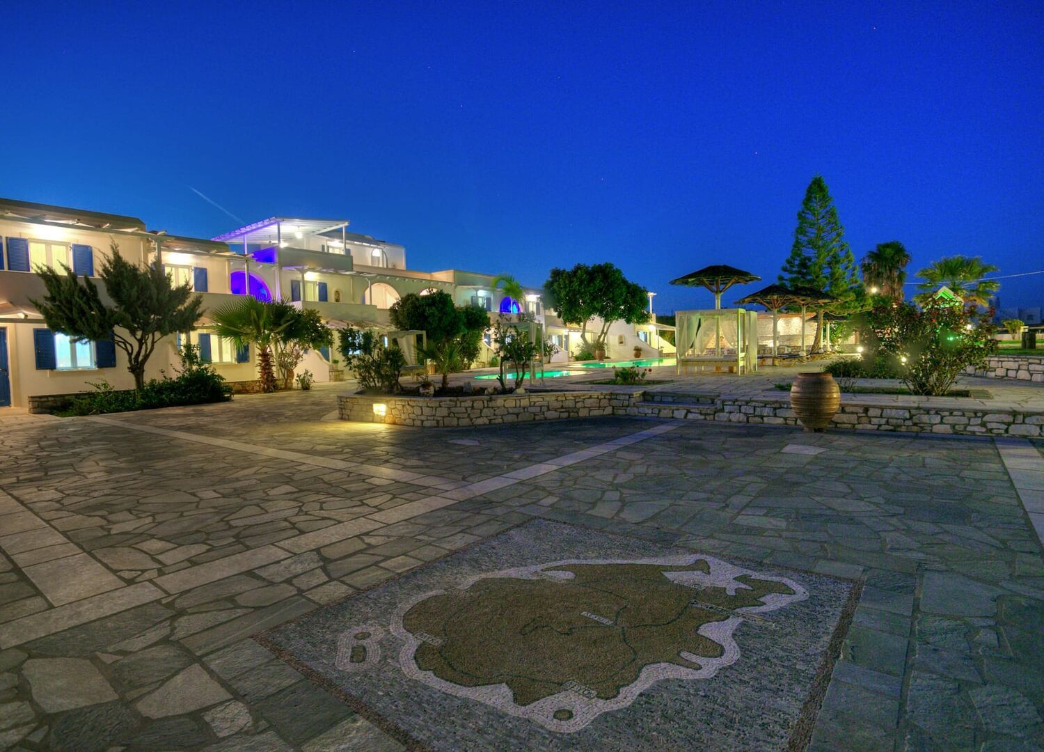 In fact, the hotel is 150 meters from the beach and 250 meters from the city. All the apartments are looking to the sea, to the swimming pools, to the gardens, to the Aegean Sea, and to another island!