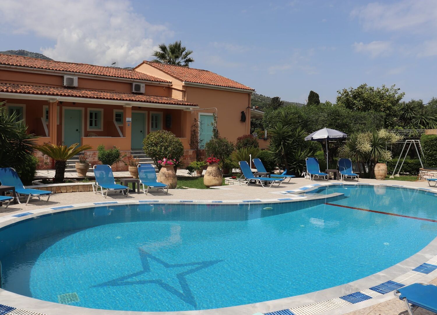 Nice small and quiet apartment complex. Beautiful garden with lovely pool. Apartment is nicely decorated, with air conditioning and good beds. The owners are very hospitable and helpful. Kassiopi is a nice and cozy harbor town. The harbor with cozy terraces and restaurants is a 10-minute walk.