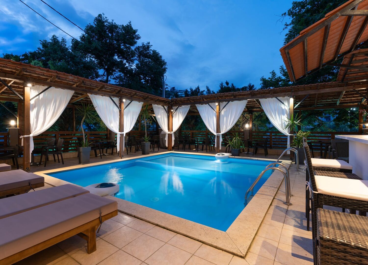A breakfast is served daily in the rooms and includes juice, jams, yogurt, honey and fresh eggs. Guests can also enjoy a drink at the hotel’s bar by the pool.