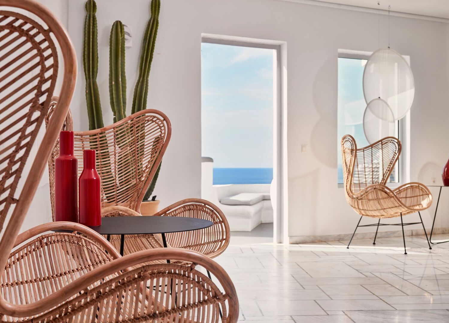 The hotel features 50 modern rooms, suites and villa with unobstructed Aegean Sea views, a fine dining restaurant, Narcissus, amongst the top 5 in Mykonos, a unique Spa and a fully equipped gym.