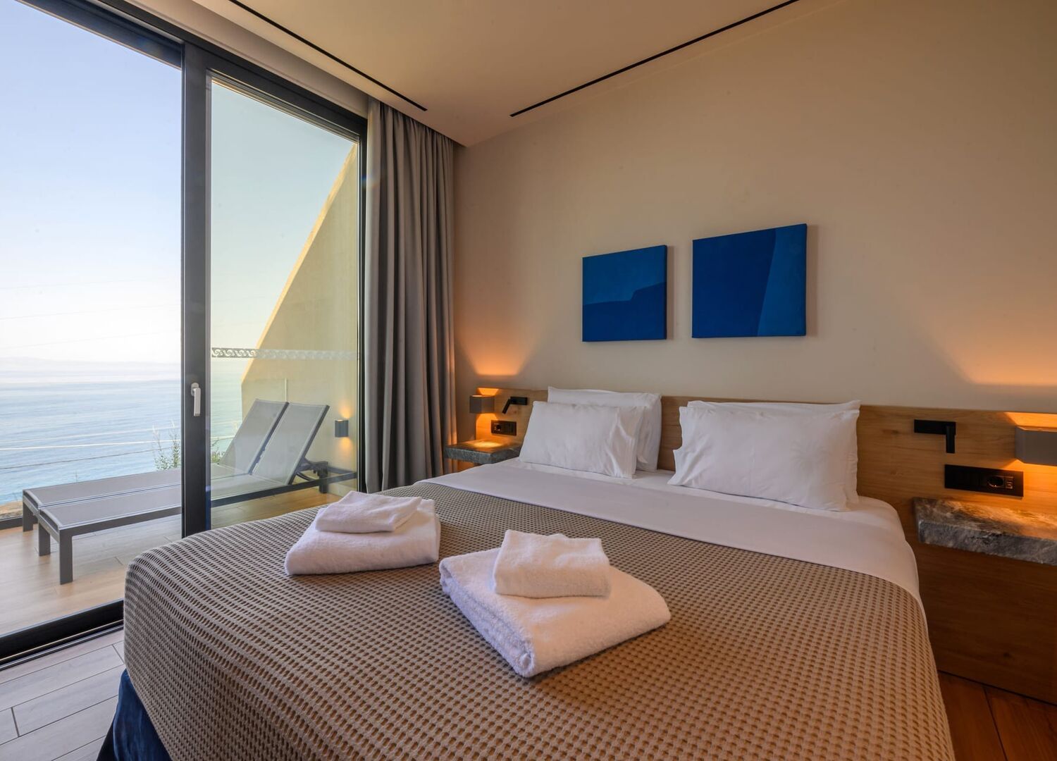 Each of our generously sized suites offers breathtaking, uninterrupted views of the sea, and comes fully equipped with all the amenities you need for a comfortable and unforgettable stay. Enjoy lazy days on our private beach, complete with complimentary sunbeds and umbrellas, or unwind on your own private balcony or terrace, equipped with pergolas, dining tables, and sunbeds – all with guaranteed sea views.
