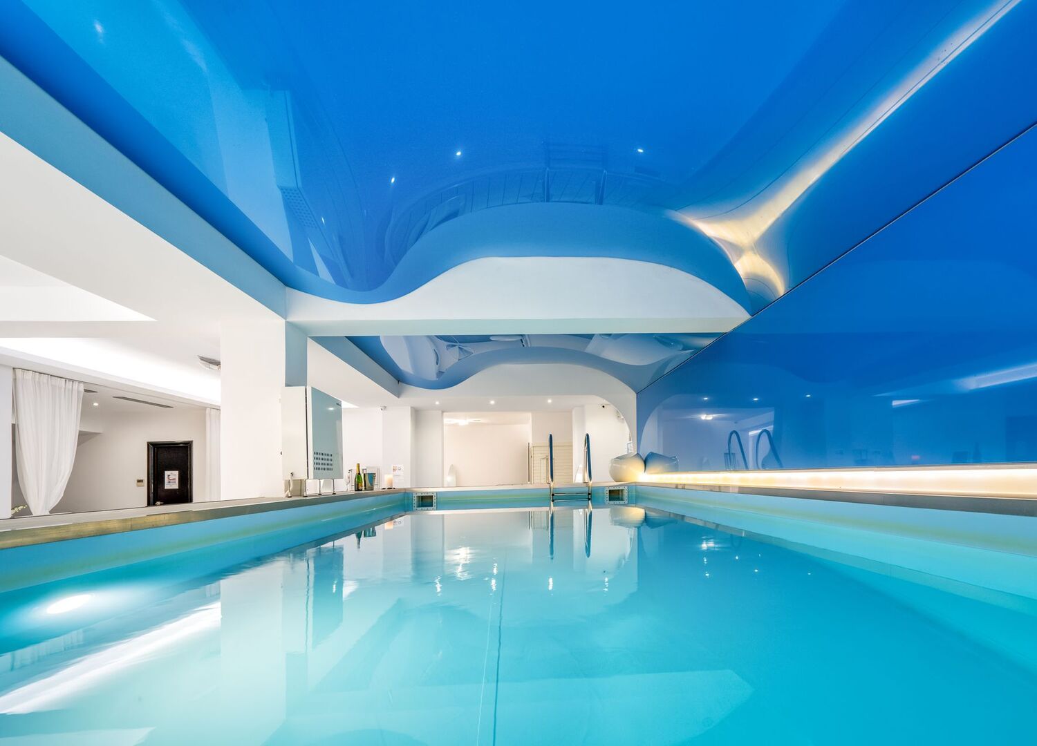 Situated into the ground level of Meandros hotel, our treatment areas include a 6m indoor heated swimming pool to relax your senses, the Jacuzzi bath with massaging jets, the Sauna for your dry heat experience, a relaxing private power shower, Facial treatment room, a private atmospheric massage room, hair salon, nail treatment room and a fitness area.