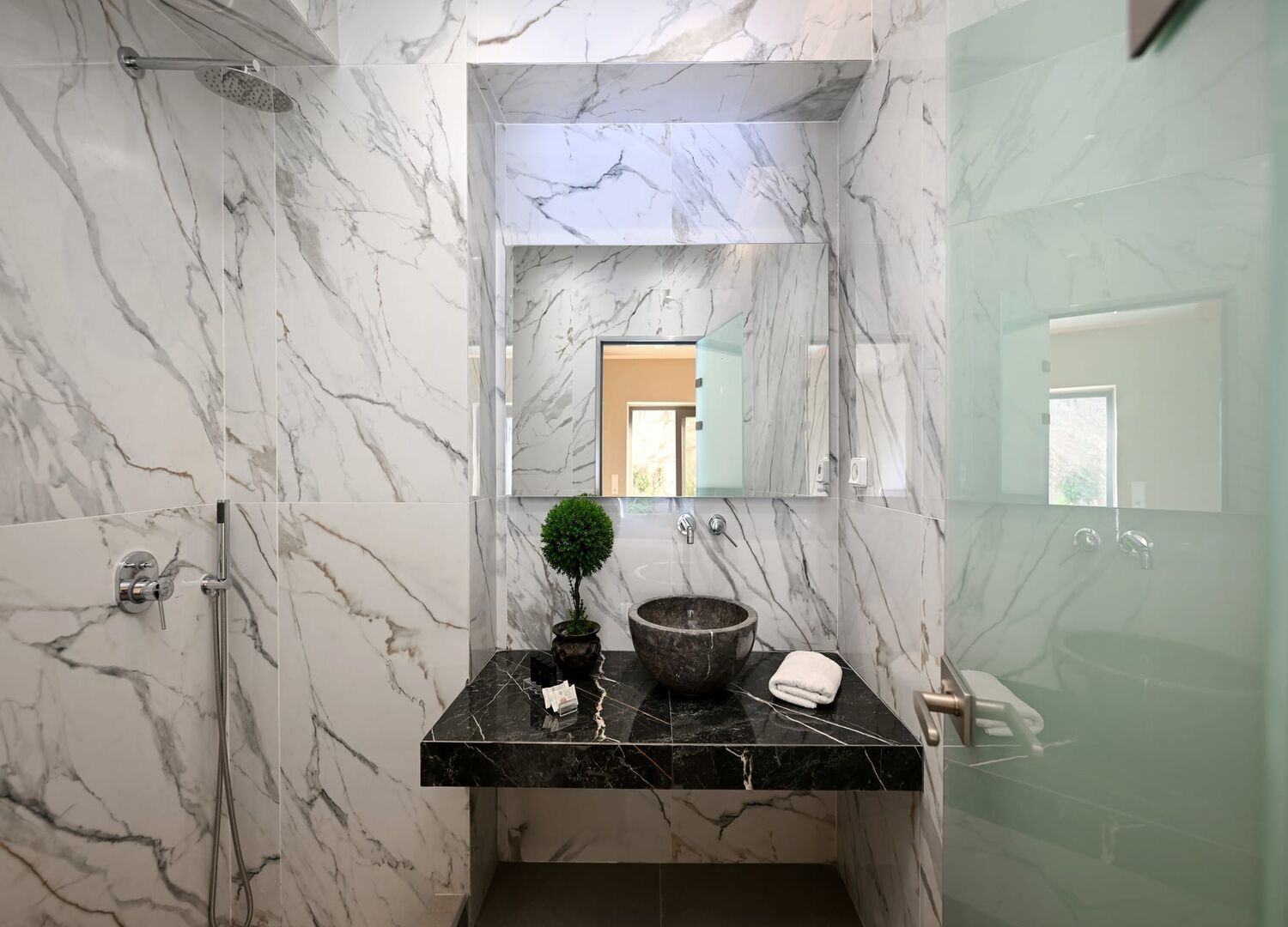 Natural light, refined details, and high-end amenities define the interiors, while the outdoor spaces offer moments of relaxation by the private pool with views of the lush countryside.