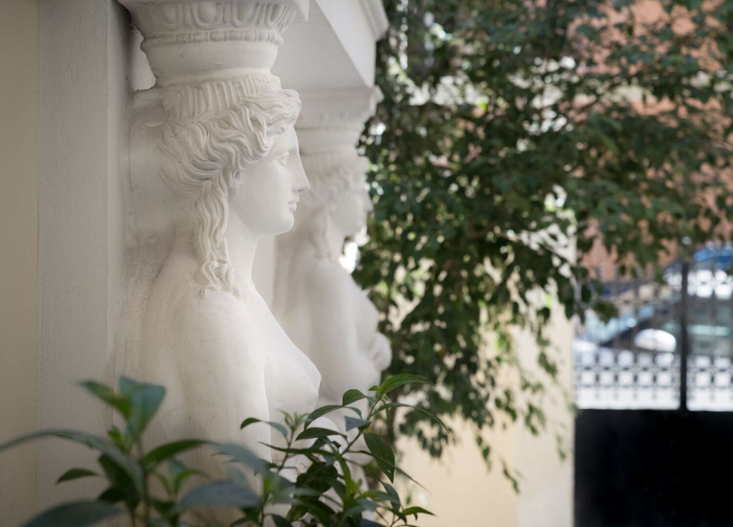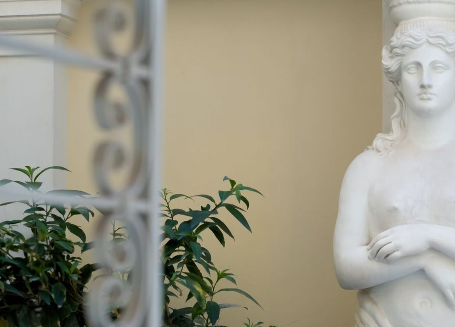 Guests can enjoy their drink at the terrace of the building which is decorated with statues of “Kore” (daughter) made by H.Goumas. Anyone can sense the smell and live the experience of old Athens just by spending some time in this theatrical setting. In just 50 meters the visitor is embracing the Parthenon.