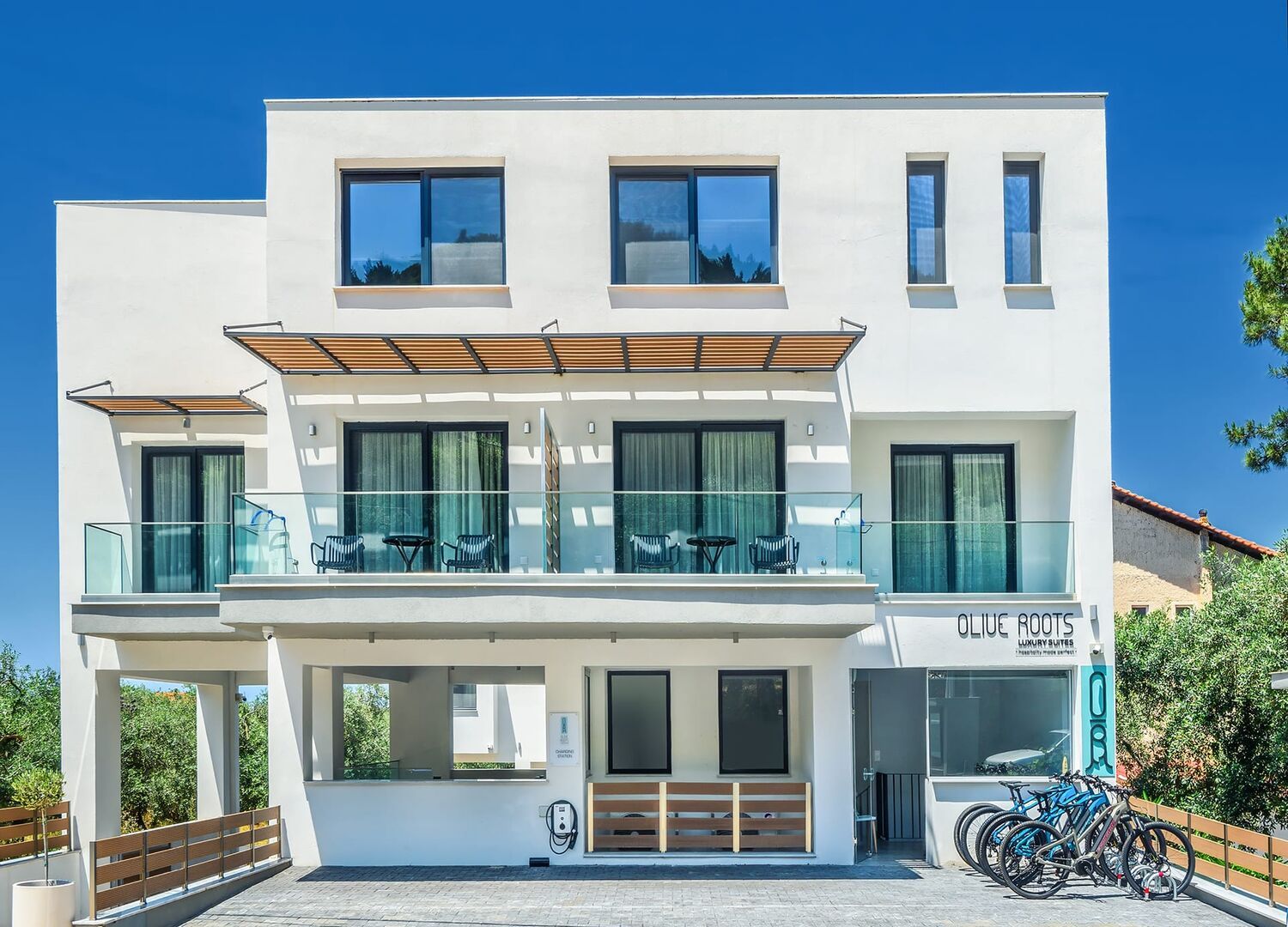 Olive Roots Thassos is a newly built luxury resort located in Thassos, Greece. Nestled among olive trees, the property offers 11 modern suites, each equipped with essential amenities for a comfortable stay. The resort is pet-free and offers a baby cot upon request. Supermarkets, beaches, bus stops, and restaurants are conveniently located near the property. Enjoy a relaxing and authentic Greek hospitality experience at Olive Roots Thassos. Address: Thassos - Skala Rachoni.