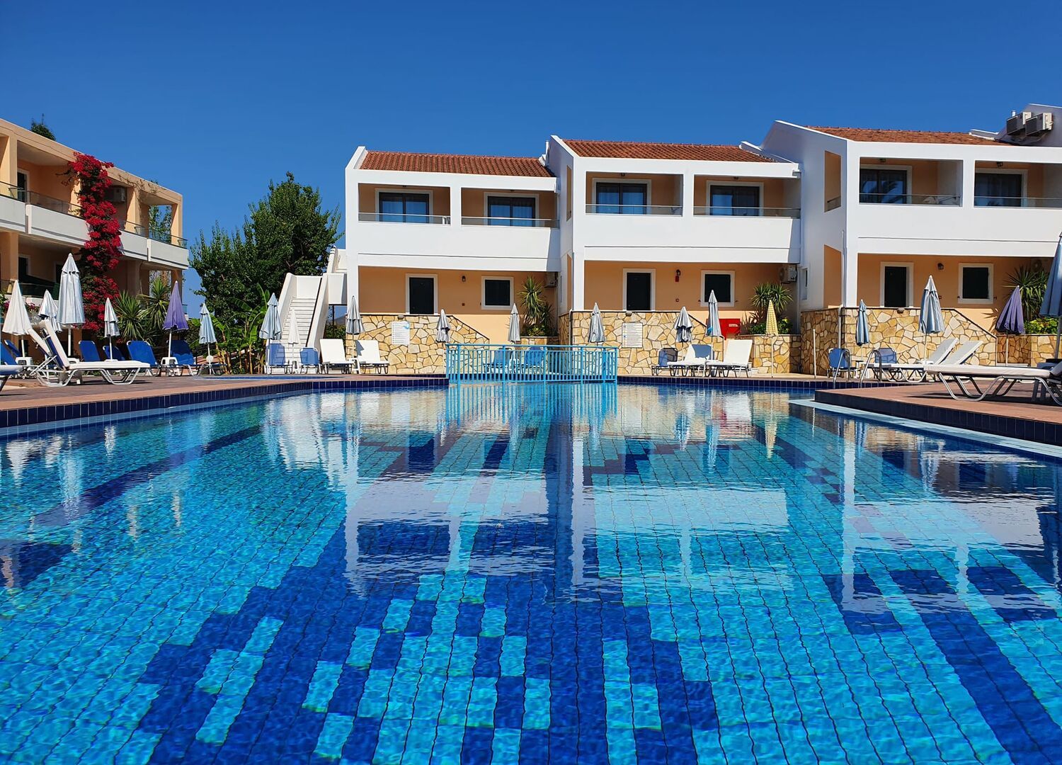 Really good hotel in a reasonable price. Staff service is amazing, so friendly and supportive. We had an issue to get to an island because of the IT issues with flights. They did everything to make our accommodation an amazing experience. It has a wonderful swimming pool, open from 9 AM till 7 PM. They also have a free bus to Laganas Beach, which is a few times a day. Also, you have there a luggage storage. Breakfast is included, with a really nice choice of food. In the room is an air conditioner what is really great. There is also pool bar, open till late hours. Summing up: this hotel is totally recommended!