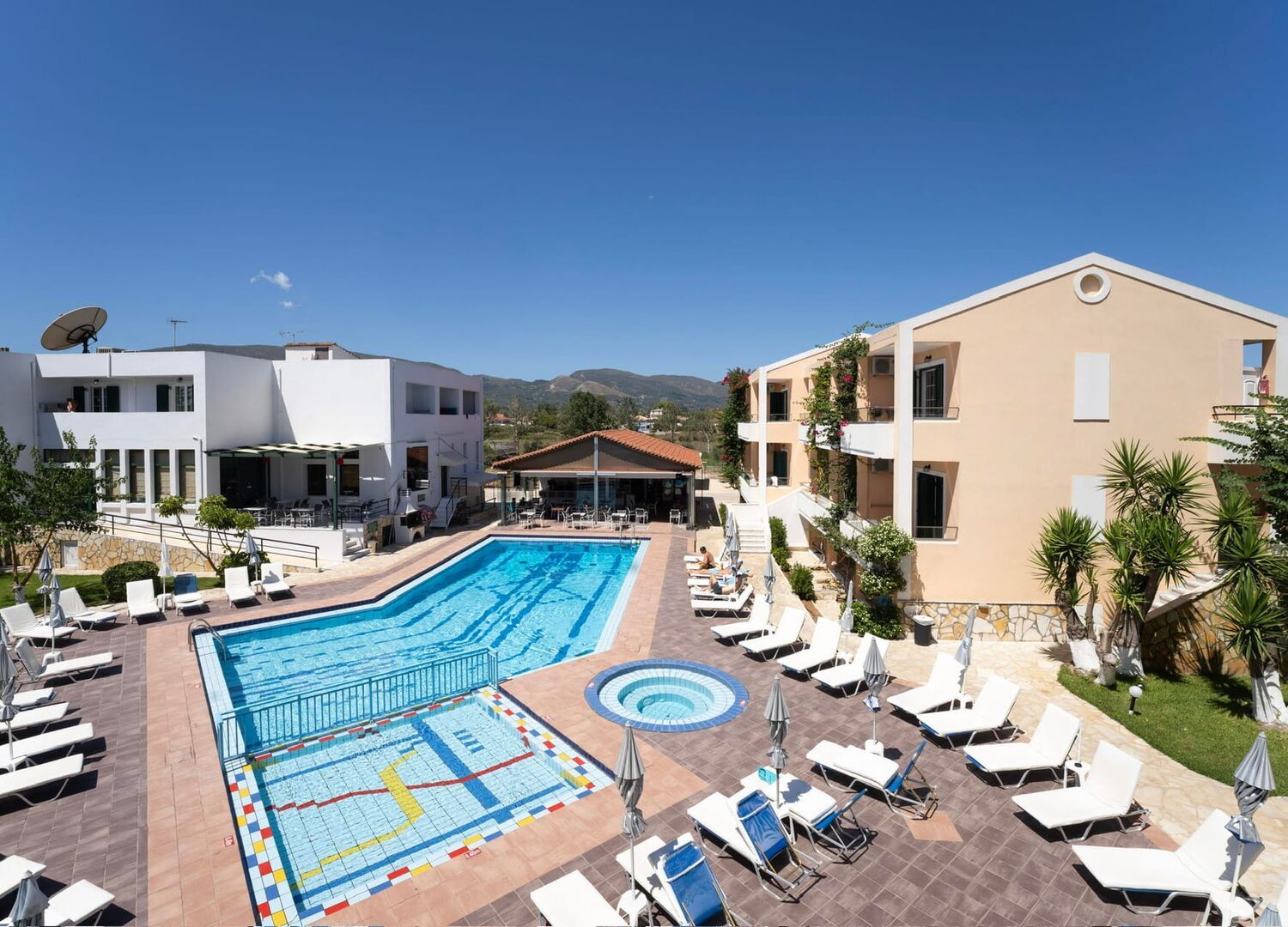 24-Hour Reception / Front Desk Airport / Port Transfer Service Baby Chairs at the Restaurant Baby Sitting (on request) Bar Beauty Treatment (on request) Billiard (Pool) Table Boat Trips Car & Motorbike Rental Daily Maid Service Doctor (upon request) Games / Play Room Internet Corner Jaccuzi Swimming Pool Lobby Lounge Mini bus to Laganas beach Outdoor Playground Parking Area Pool Bar Pool Snack Bar Pool Sunbeds & Umbrellas Safe Deposit Box Satelite TV Shower & Changing Room Snack Bar Swimming Pool (Fresh Water) Swimming Pool for children Swimming Pool with Children's Area Toilets for disabled people Wi-Fi Internet Access