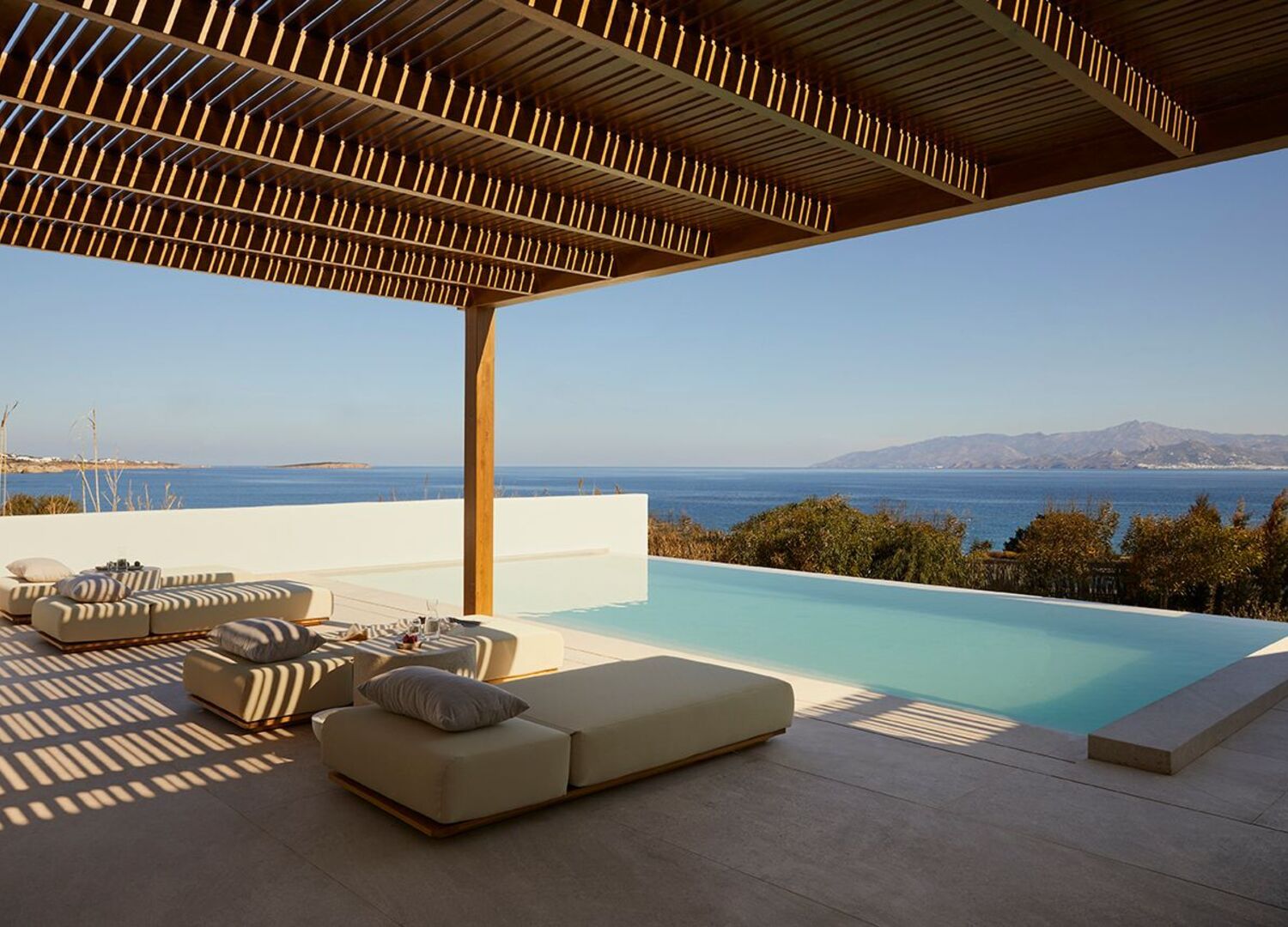Parocks Luxury Hotel & Spa, 5-star Hotel on the east coast of Paros, close to the lively town of Naoussa, with spectacular view, just a few steps from a lovely beach and the crystal clear water's of the Aegean Sea.