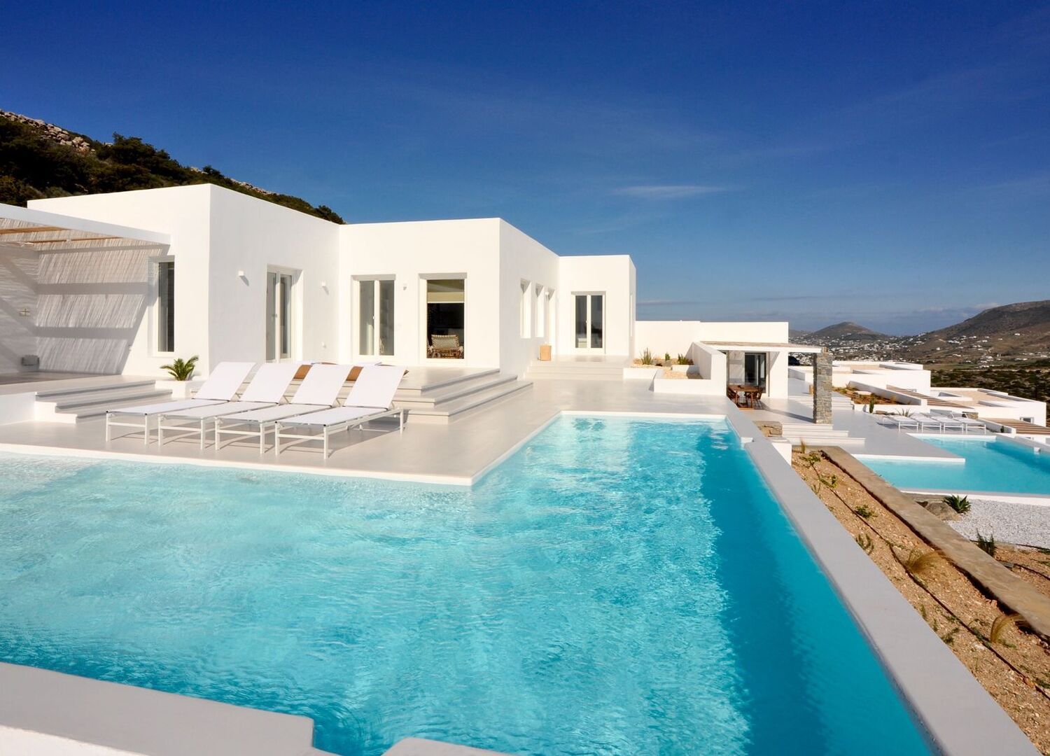 Pili Pala Suites in Paros, Agios arsenios, offers 4 stand alone suites, each with 2 master bedrooms with ensuite bathrooms. The kitchens are fully equipped and the living rooms overlook private pools. Enjoy a luxurious and relaxing stay at Pili Pala Suites.