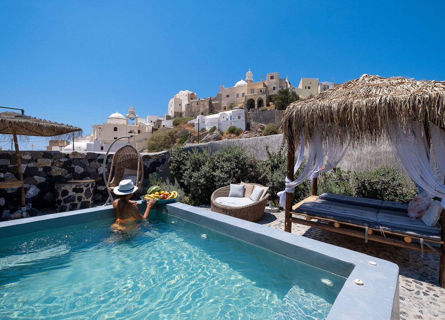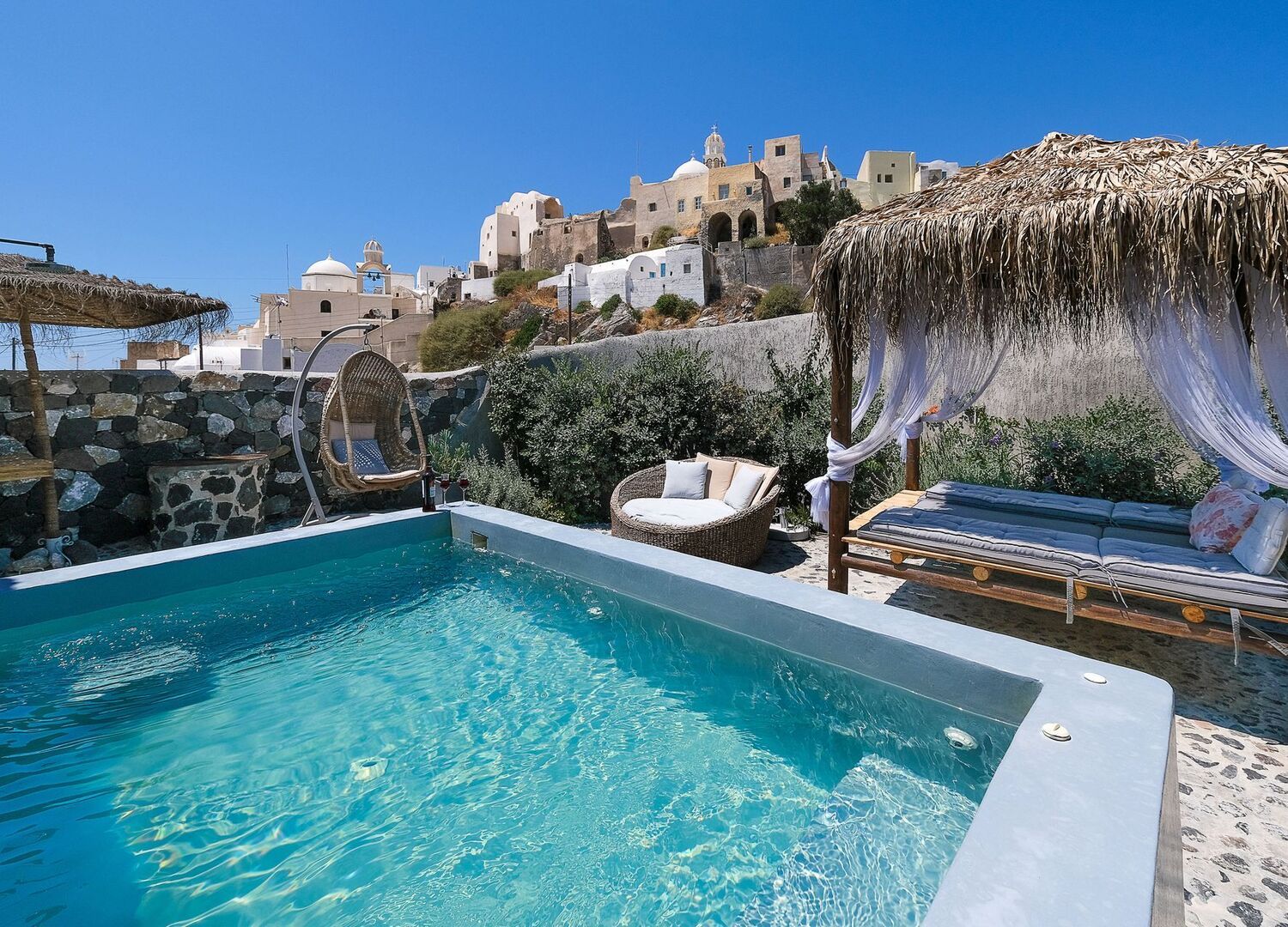 >> Lower Rock Yard: Dive into pure relaxation in the pool (3x2m), surrounded by cosy lounge areas with breathtaking views of the medieval "Kasteli" castle.