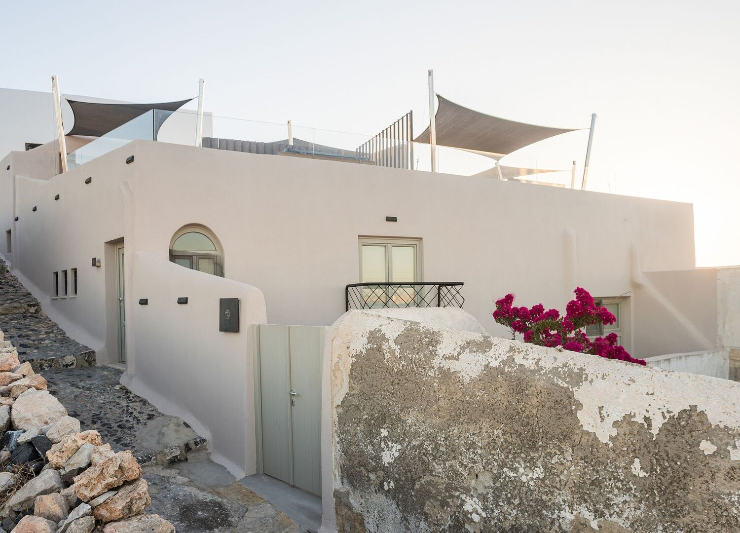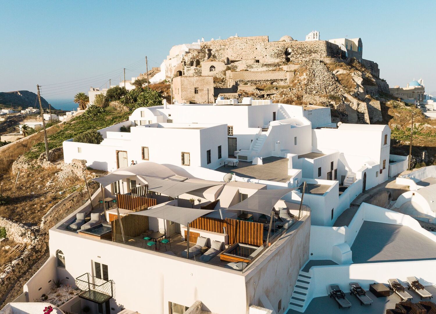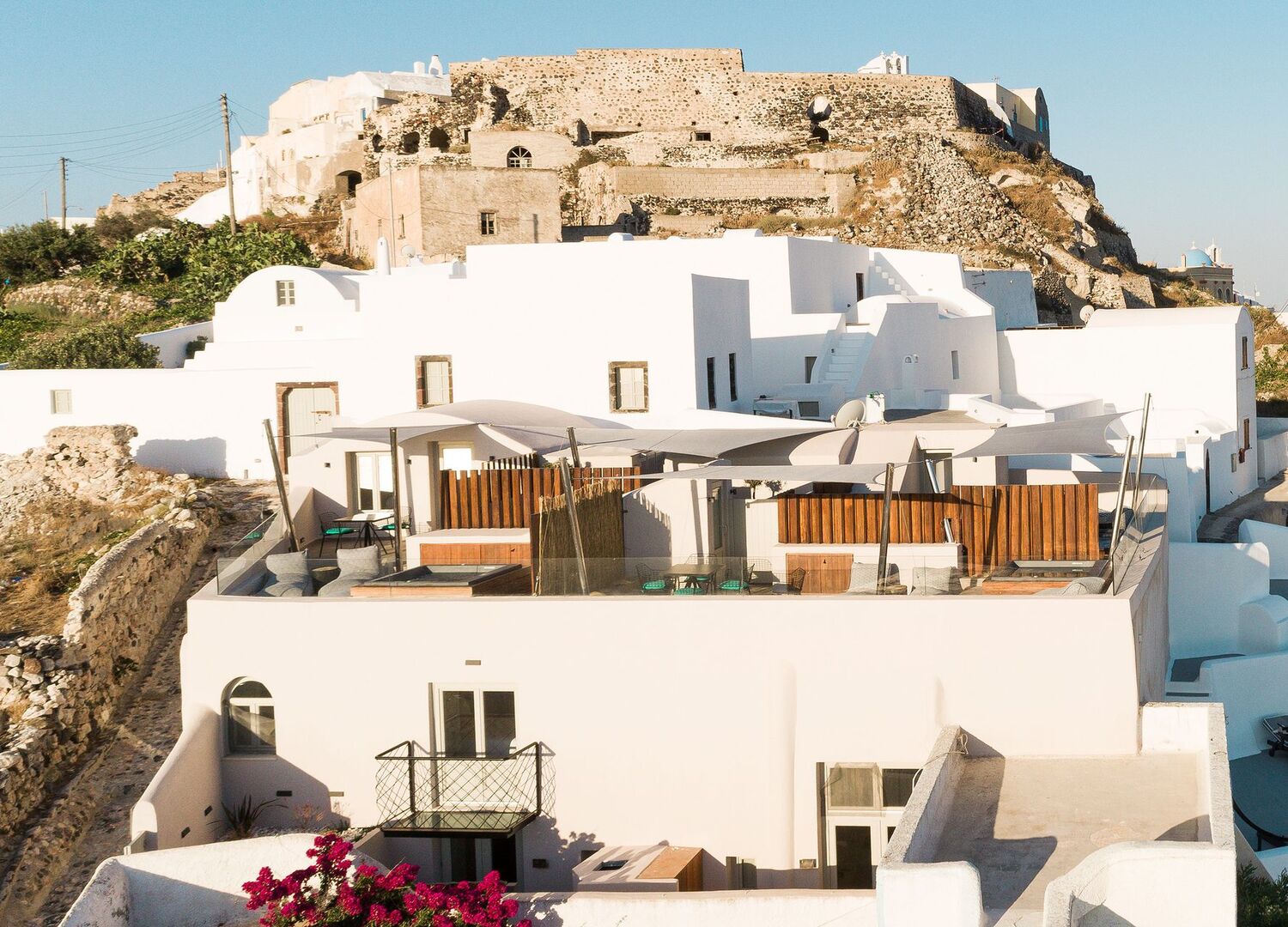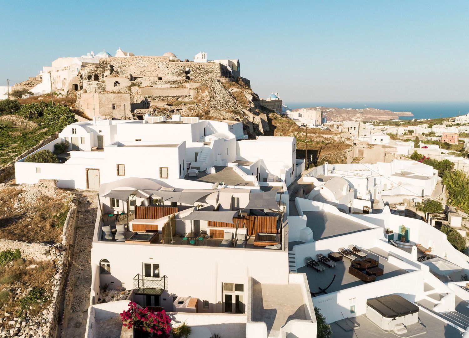 Two old canavas completely renovated into three luxury villas , with modern design and breathtaking view of Santorini island. Fully equiped with modern facilities and outdoor jaccuzzi.The biggest villa (100 sqm2) has an indoor pool and the other two 50 and 60sqm2 with outdoor private space and all the modern amenities.