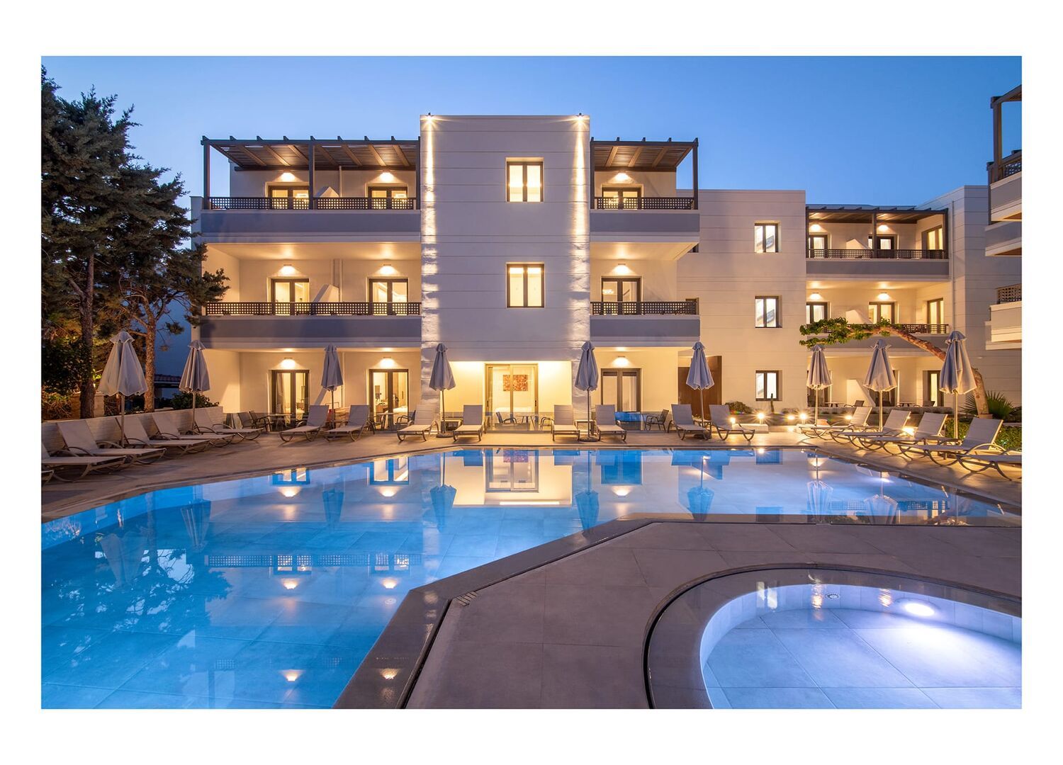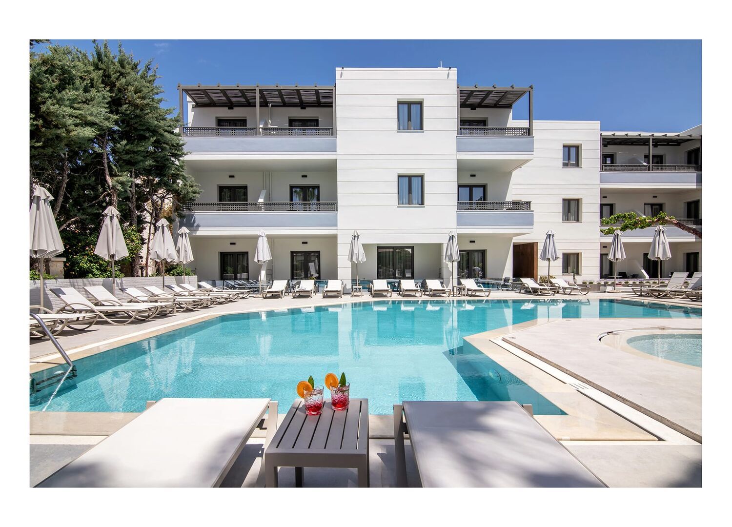 Short walk from the beach, and the many tavernas. Rooms modern and fairly spacious, staff friendly and helpful. Great selection at Breakfast, so much choice. Pool area and pool bar popular, very enjoyable stay.