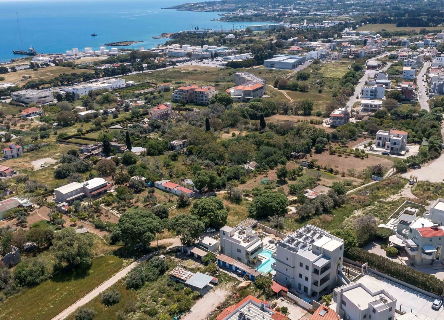 At Sun City Rhodes, we offer more than just a place to stay—we provide an experience. Each apartment features modern, custom-made furniture. Surrounded by a garden of cypresses, herbs, and olive trees, our property reflects the charm of Mediterranean nature. Enjoy the beauty of the Aegean Sea with sun, pool, and a peaceful setting—we are dedicated to making you feel at home in this serene environment.
