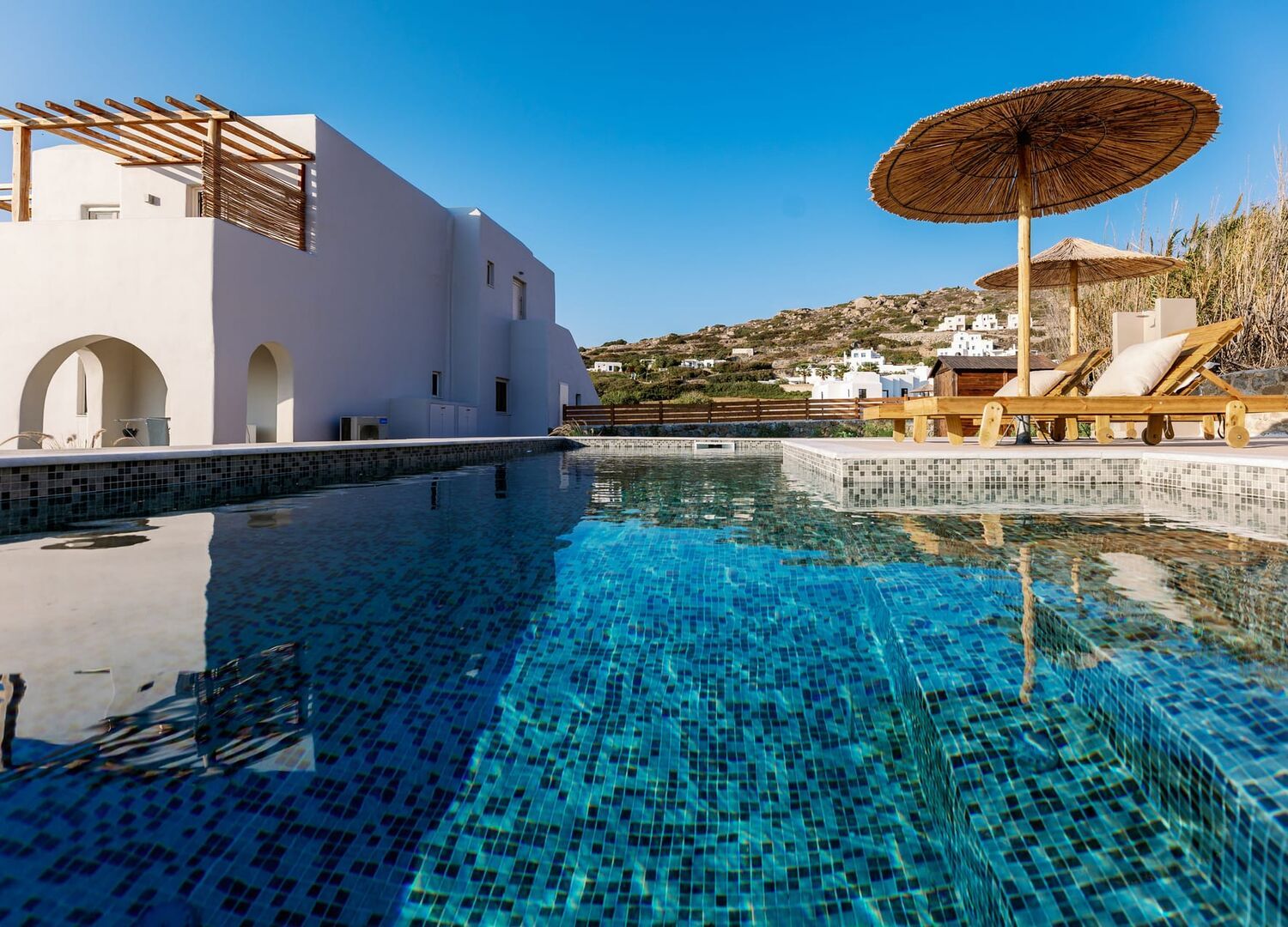 Lovely place to stay in Naxos. People were very nice and friendly. Turn down service every day. Pool was great and we had our personal hot tub. They have air conditioning which was great too lol. Good location to the beaches and the town with a car only 5-10 min drive!