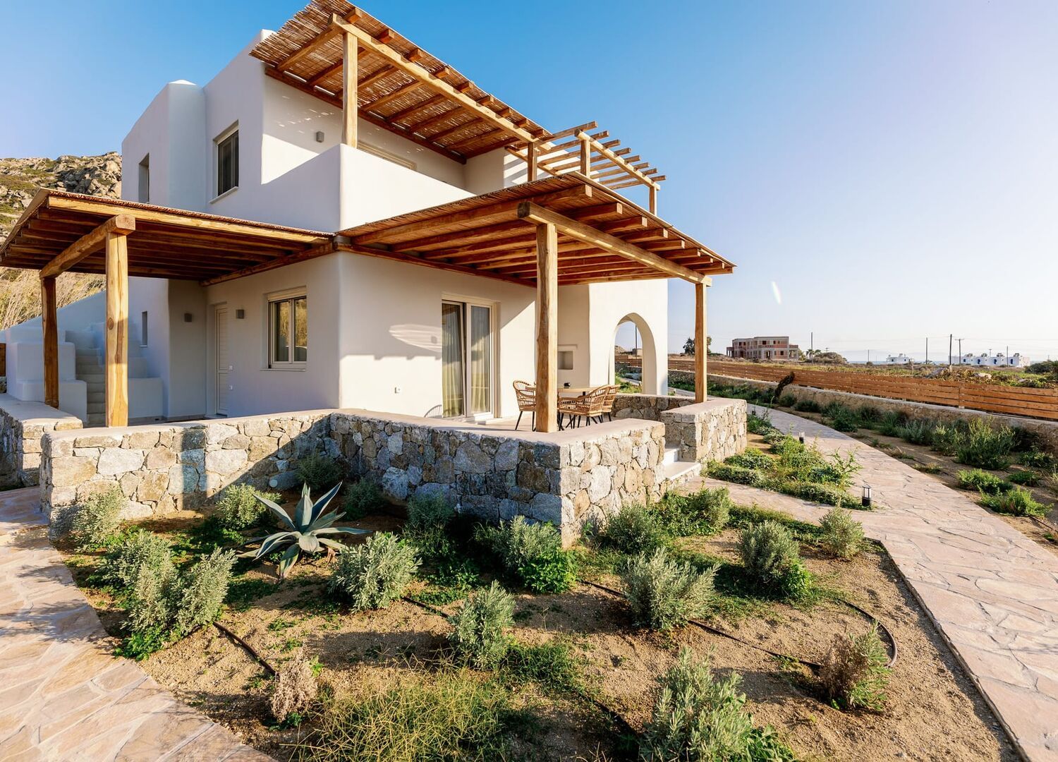 The newest addition to Naxos’ luxurious accommodations, situated on the idyllic Orkos beach. Villa Finest consists of two villas that each can accommodate up to six guests, with two bedrooms and two additional beds in the living room.