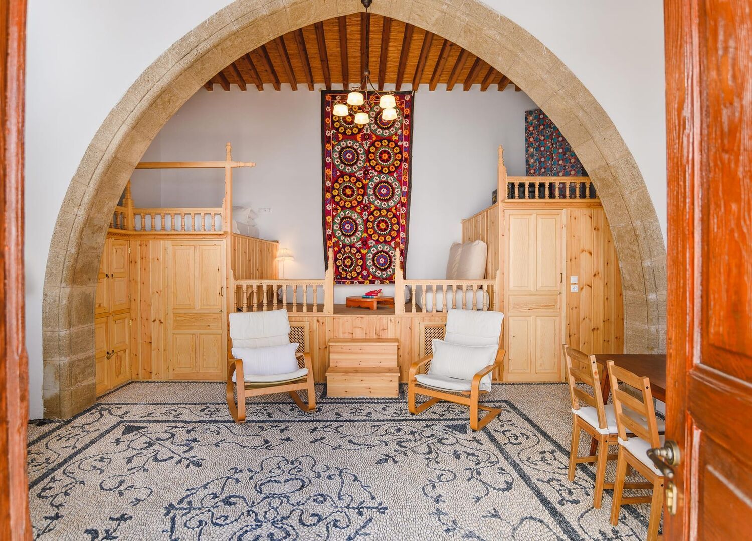 Villa Nouna Rhodes is a charming 2-bedroom, 2-bathroom property located in Lindos, Rhodes. Guests can enjoy stunning panoramic views of Lindos Bay and the historical Lindos Acropolis. The villa immerses guests in Lindian culture with its traditional hoklaki Courtyard and Lindian Sala. Retaining its traditional charm while offering modern comforts, Villa Nouna is the perfect retreat for up to 6 guests.