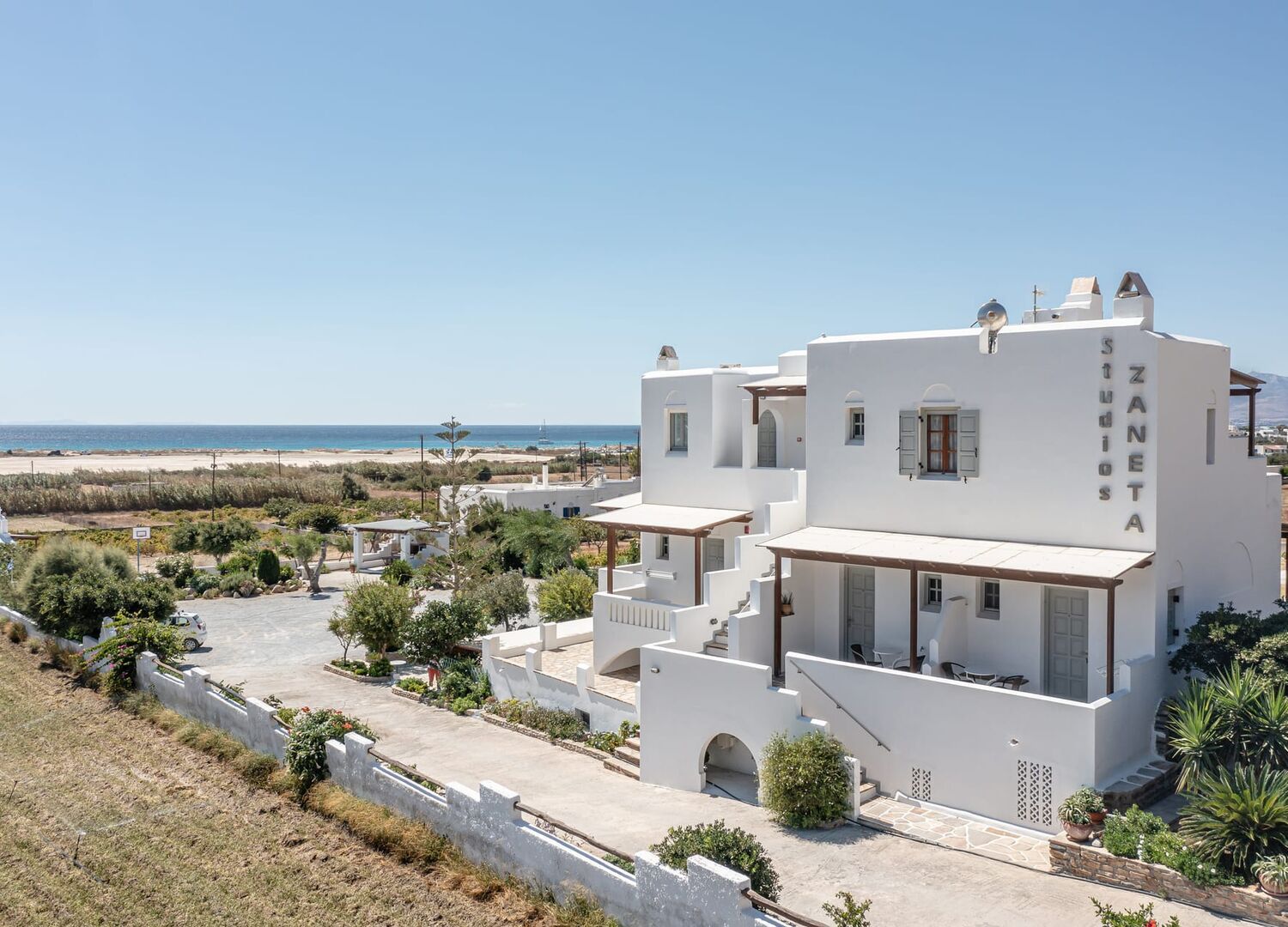 Zanneta Apartments & Suites are constructed with the main target of offering the best service to the client. The complex is constructed following the traditional Cycladic architecture. Our property has also a place of 4,000 m2, with a big garden with lots of flowers and trees.