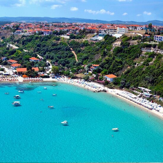 Kassandra is at the westernmost tip of Halkidiki, close to Thessaloniki. Entering into Kassandra makes quite and impression, as it is connected to Halkidiki through the bridge at Nea Potidea, the first village visitors encounter. In fact, the Kassandra peninsula is an island separated from the mainland by the Potidea canal, which offers a spectacular panoramic view, especially at sunset.