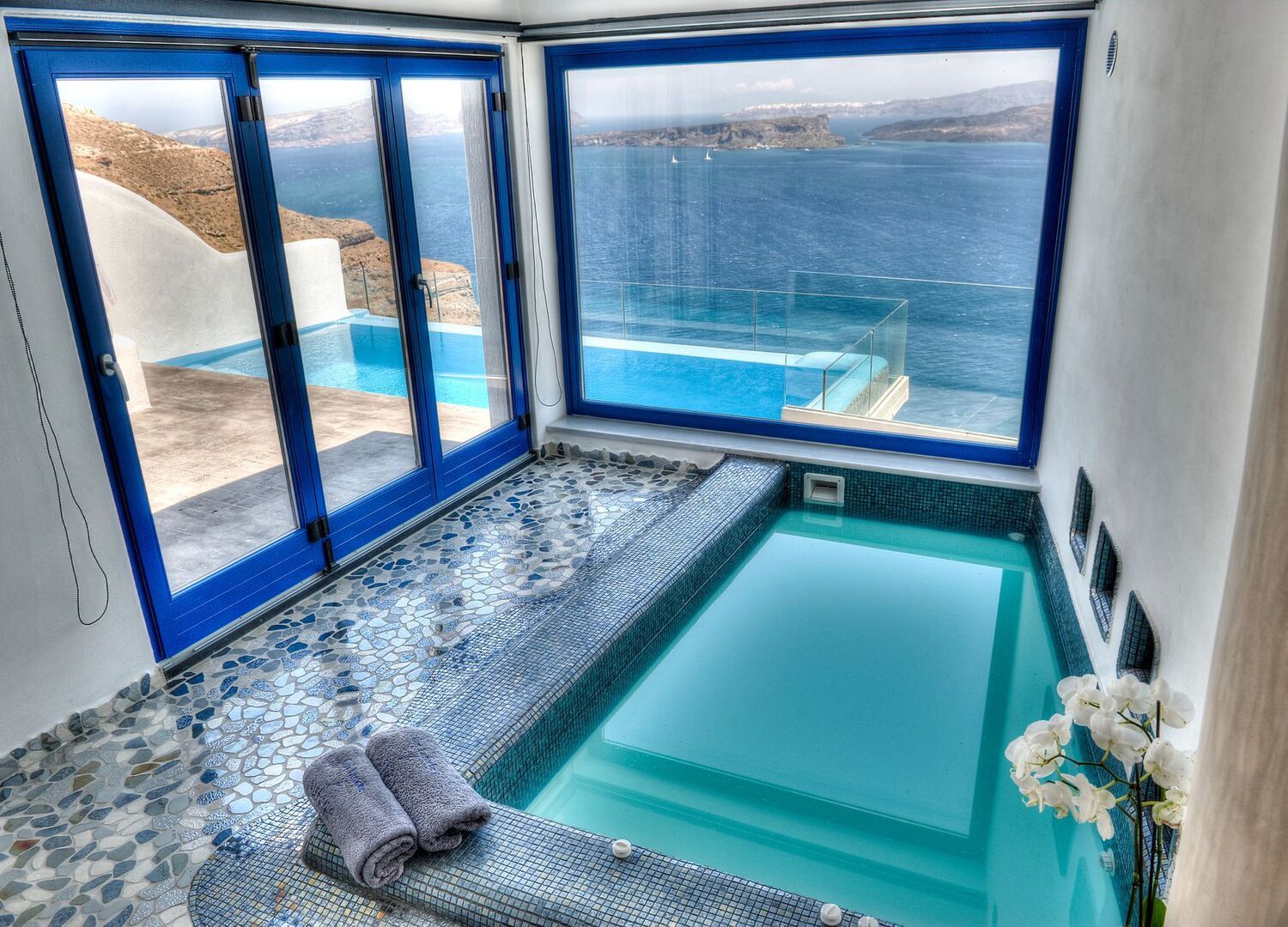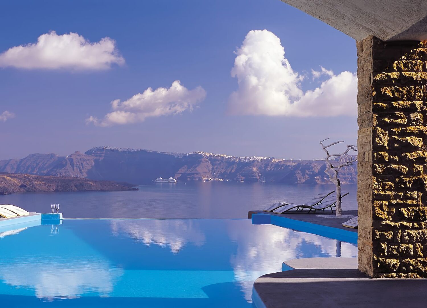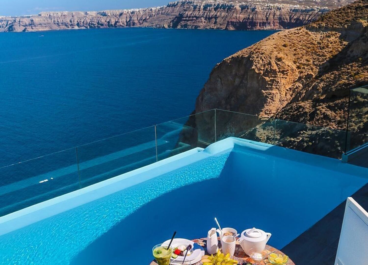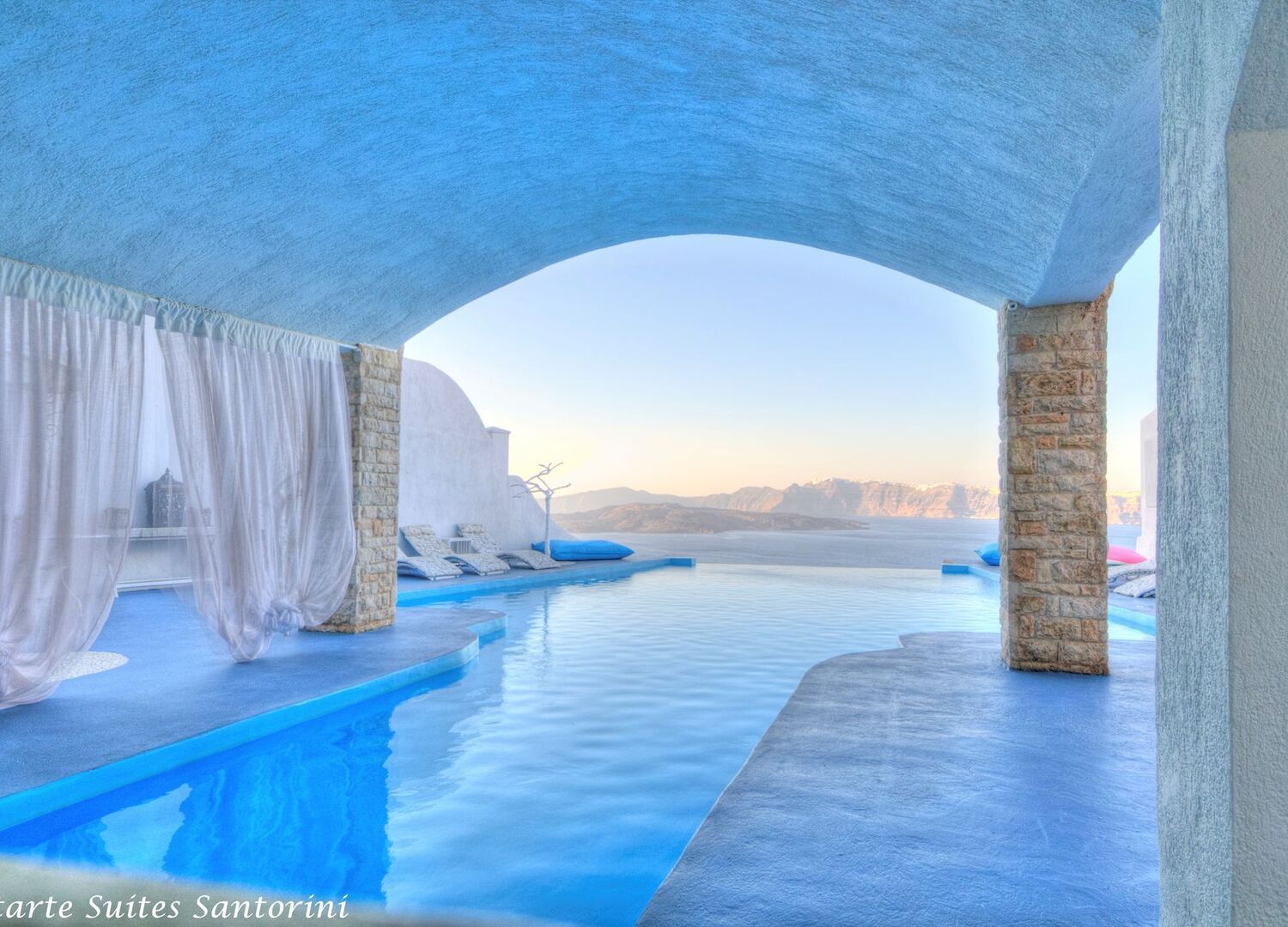 Astarte Suites consists of 15 luxury suites built Cliffside at Akrotiri’s Caldera with direct breathtaking views of the Aegean Sea and the Volcano of Santorini. Located at a privileged location, away from the busy crowds, makes it ideal for secluded and luxury romantic vacation in Santorini.