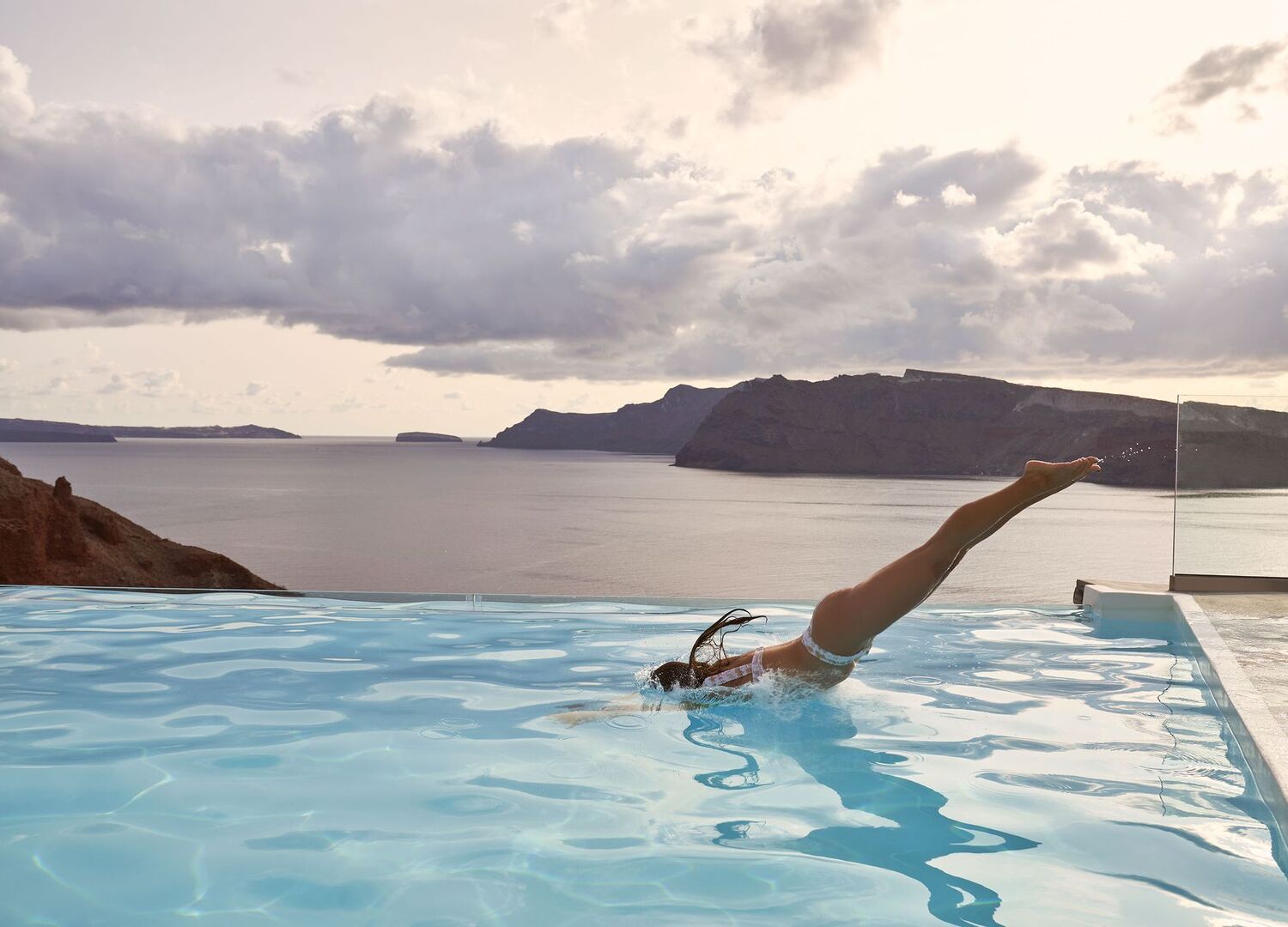 Guests can enjoy spectacular caldera views whilst taking a refreshing dip in the hotel’s main pool. As evening draws in, guests can admire Santorini’s famous sunset in the privacy of their suite’s veranda. Where style meets nature, these 16 luxury suites symbolize the typical Cycladic allure. Each suite boasts a private balcony with panoramic views, while some of the suites feature private outdoor Jacuzzi or private pool.