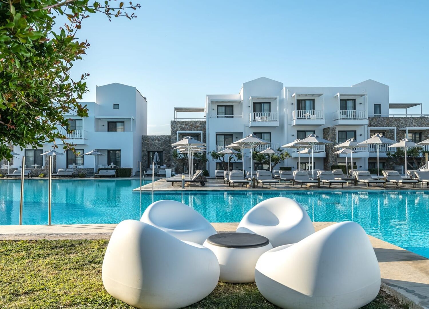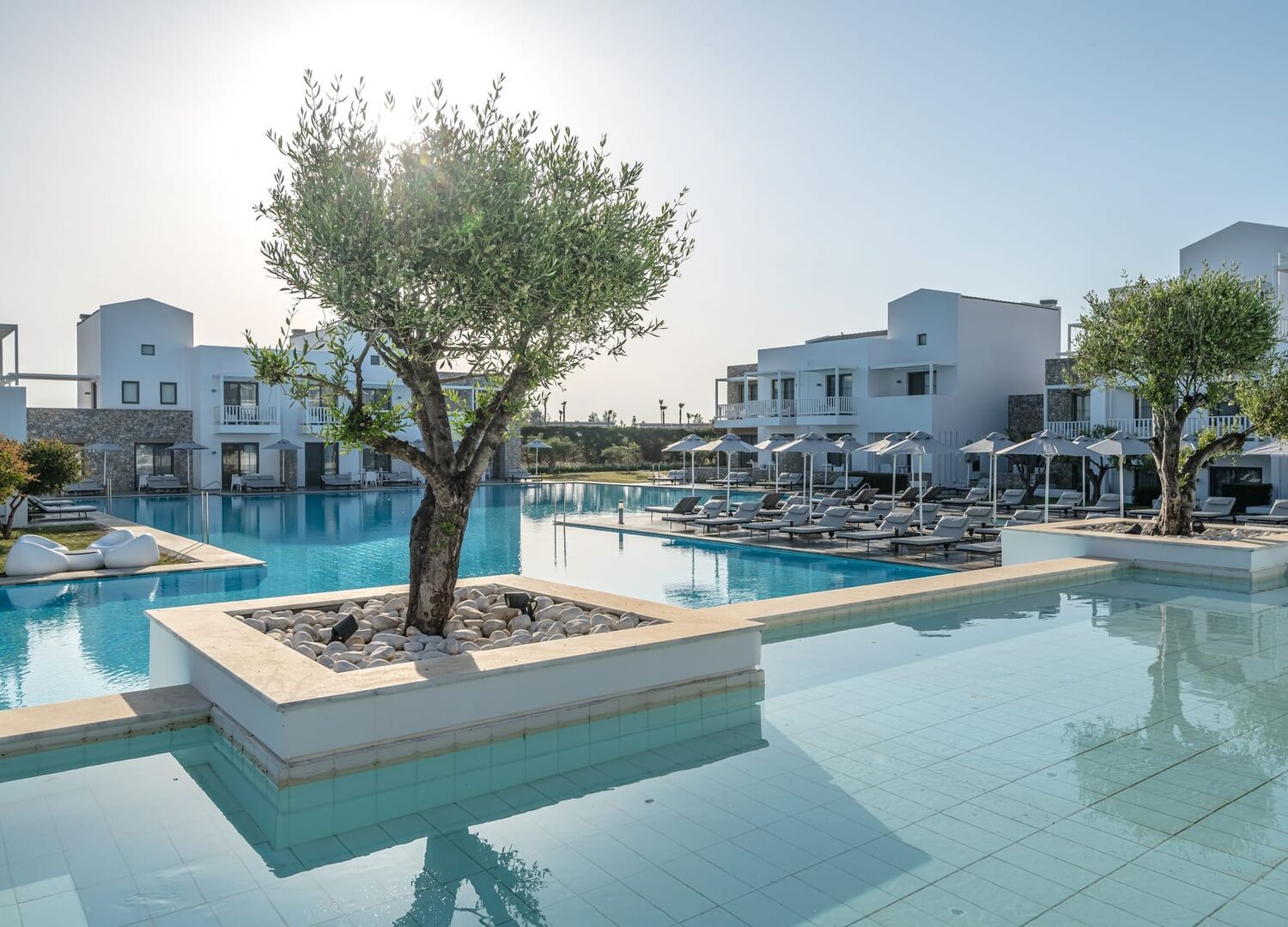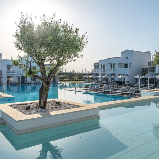 At the edge of the Aegean Sea, the Diamond Deluxe Hotel & Spa embodies the essence of calm luxury — a 5-star adults-only retreat designed for guests aged 16 and over who seek serenity, elegance, and refined comfort. This boutique resort blends contemporary architecture with authentic Greek charm, surrounded by shimmering lagoon-style pools, lush gardens, and breathtaking sea views.
