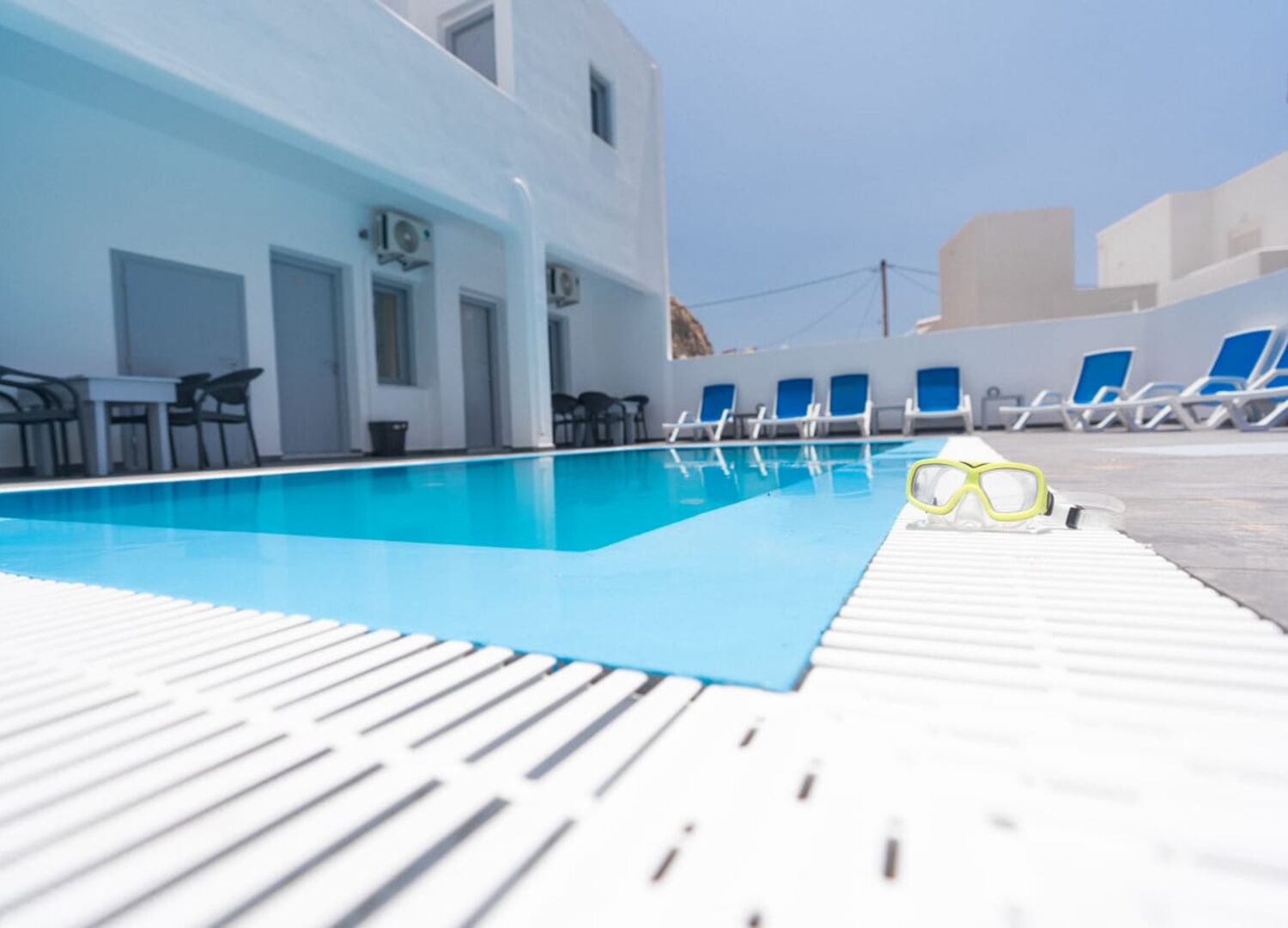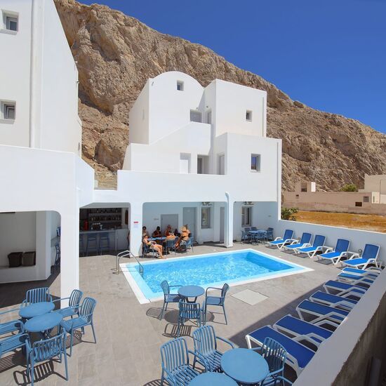 In love with place the rooms are very clean the service at the pool with the best cocktails and the location its in the center of perissa beach 2mins away by walk from the black sandy beach and all the restaurants and the shops The staff. Very friendly specially mario very kind and helpful