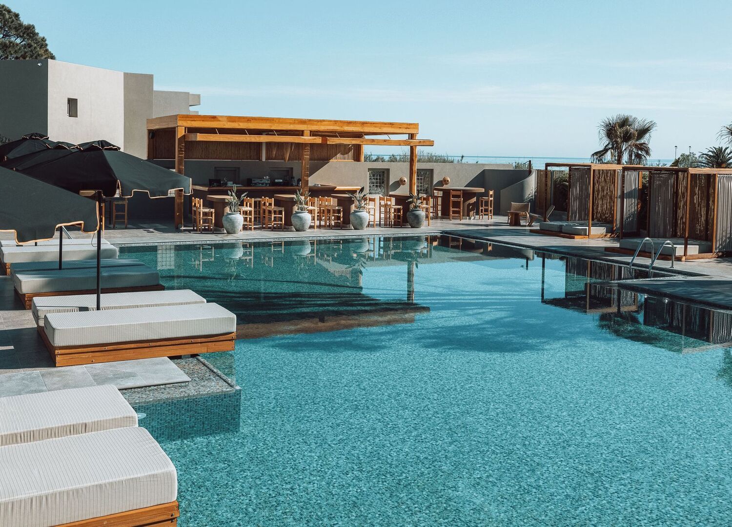 Overall this is a great hotel with exceptional service, and some shortcomings. I was contemplating a 4-star review, but it is only a 4 compared to expectations at this level. Food was amazing including breakfasts, lunches, dinners and snacks inbetween. Everything was included in premium all inclusive except a very few special coctails - and most of the food was just really good, and a lot of choice. Location was great, this is not a huge resort, the beach is close to the rooms, as are the restaurants and other facilities. Staff was super nice and very helpful, they really do everything so guests have a great time. They provided excellent customer service, and Katerina is a gem! The room was clean and nice, the private pool attached to our room was also clean and very comfy. Sunbeds on the beach were super cozy and comfortable, and there were more than or just enough most of the time. Property is very well maintained and just looks nice. On the negative side, there was no hot enough water in the room, like at all. If you took a shower at the right time when nobody wanted to (early afternoon), you could get warm water, but not hot. If you tried showering in the evening, it was lukewarm at best, but sometimes I was cold in the shower with the hottest setting possible. This is totally unacceptable and inexcusable at this level and price range, and maybe should limit the review at 4 stars but in the end I am choosing not to due to all the other great stuff this hotel has. Also drains in the room hat a bit of a smell, which was not a dealbreaker for us but noticable.