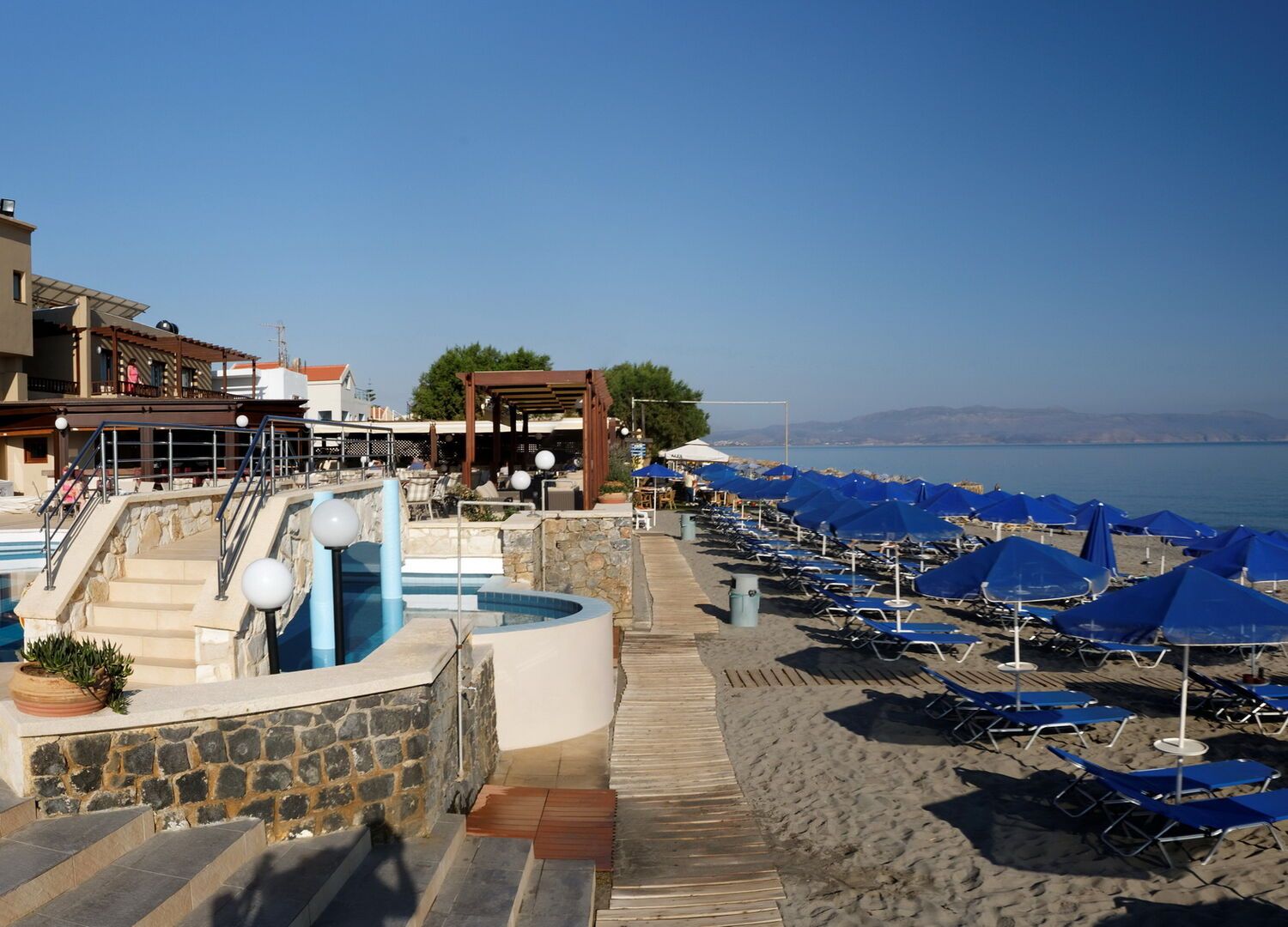 The complex consists of studios, one and two bedroom apartments as well as maisonettes (88 in total). Our guests enjoy the luxurious environment, the friendly atmosphere and the famous Cretan hospitality. The location of Indigo Mare even it is in a very quiet area it is only 450 meters away from the central square of Platanias. It is a 15-minute drive from the center of Chania and 30 minutes from Souda Airport via the highway. Indigo Mare Hotel has: Outdoor pool, outdoor children's pool, games room with billiards, table tennis and football, mini market with traditional Cretan products and selected wines. The coexistence of the pool with the elegant pool bar, right next to the beach of Platanias, gives you the opportunity to relax and enjoy the sunrise and sunset in the majestic blue of the Cretan Sea.