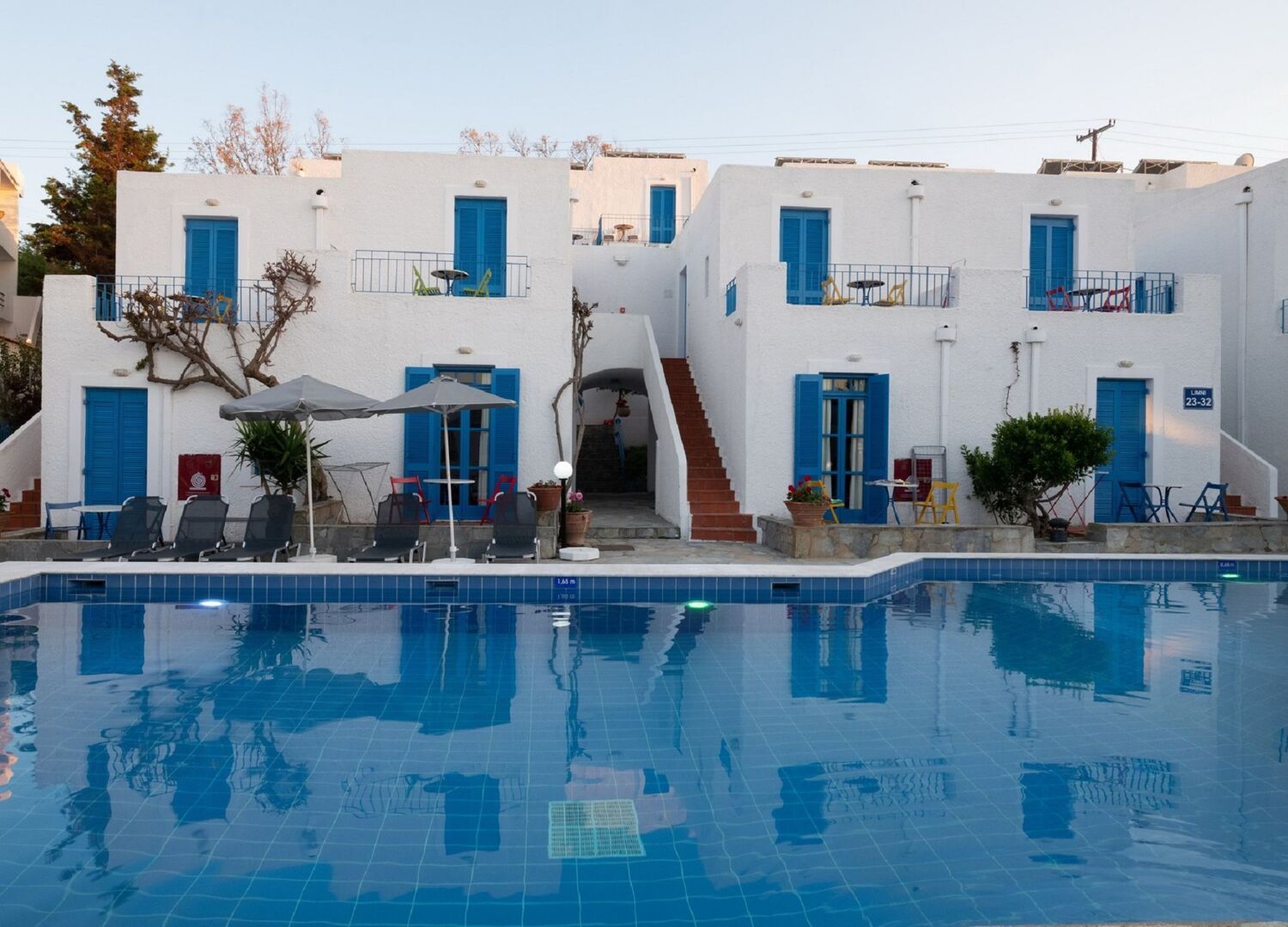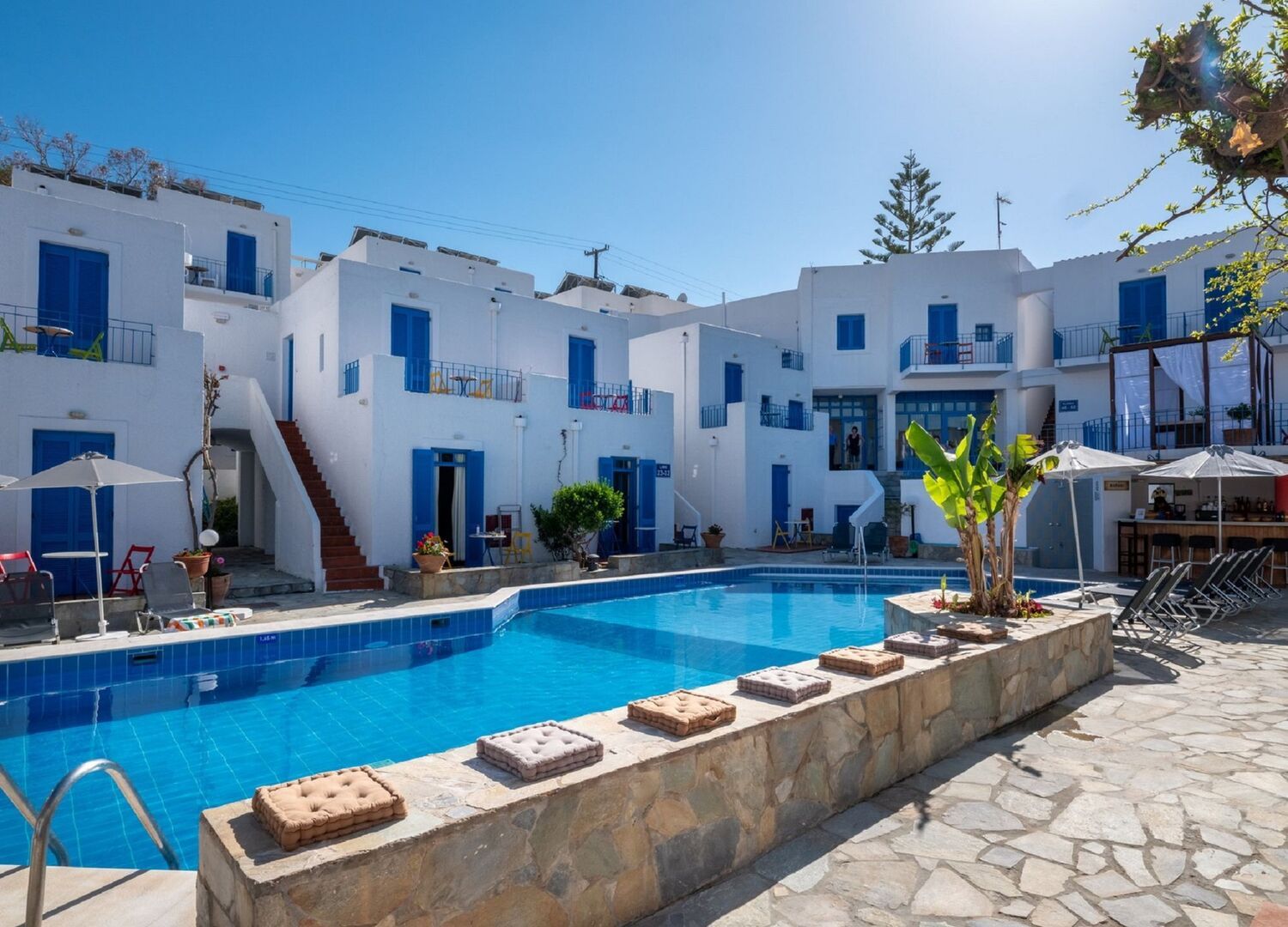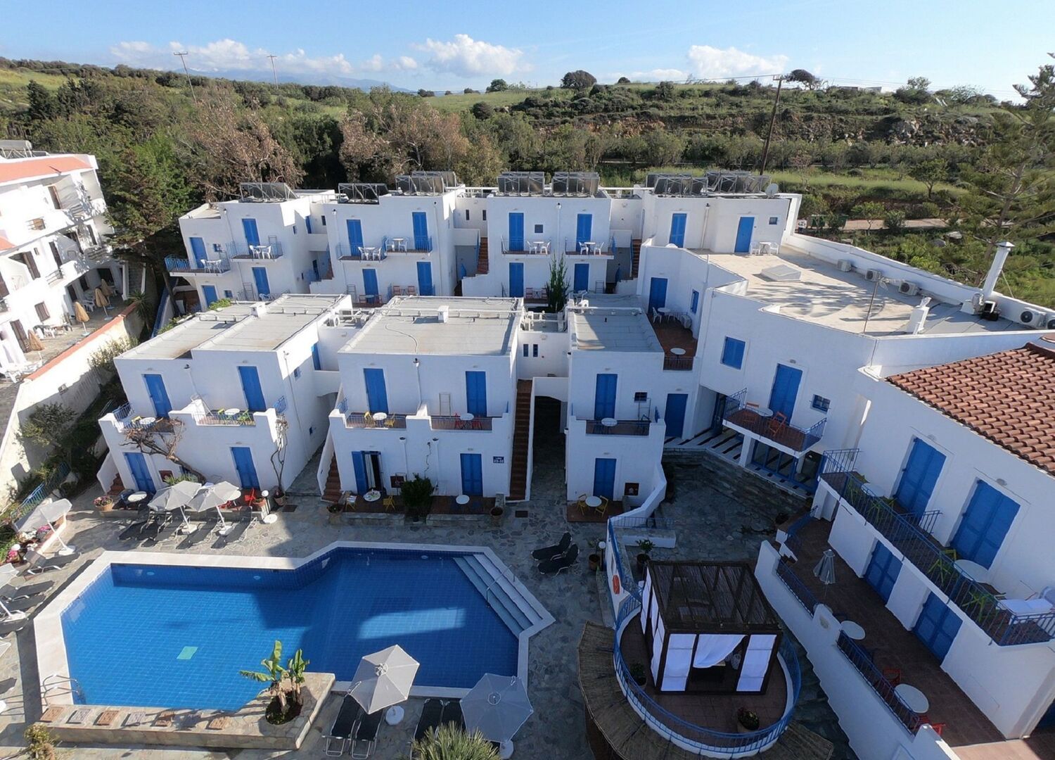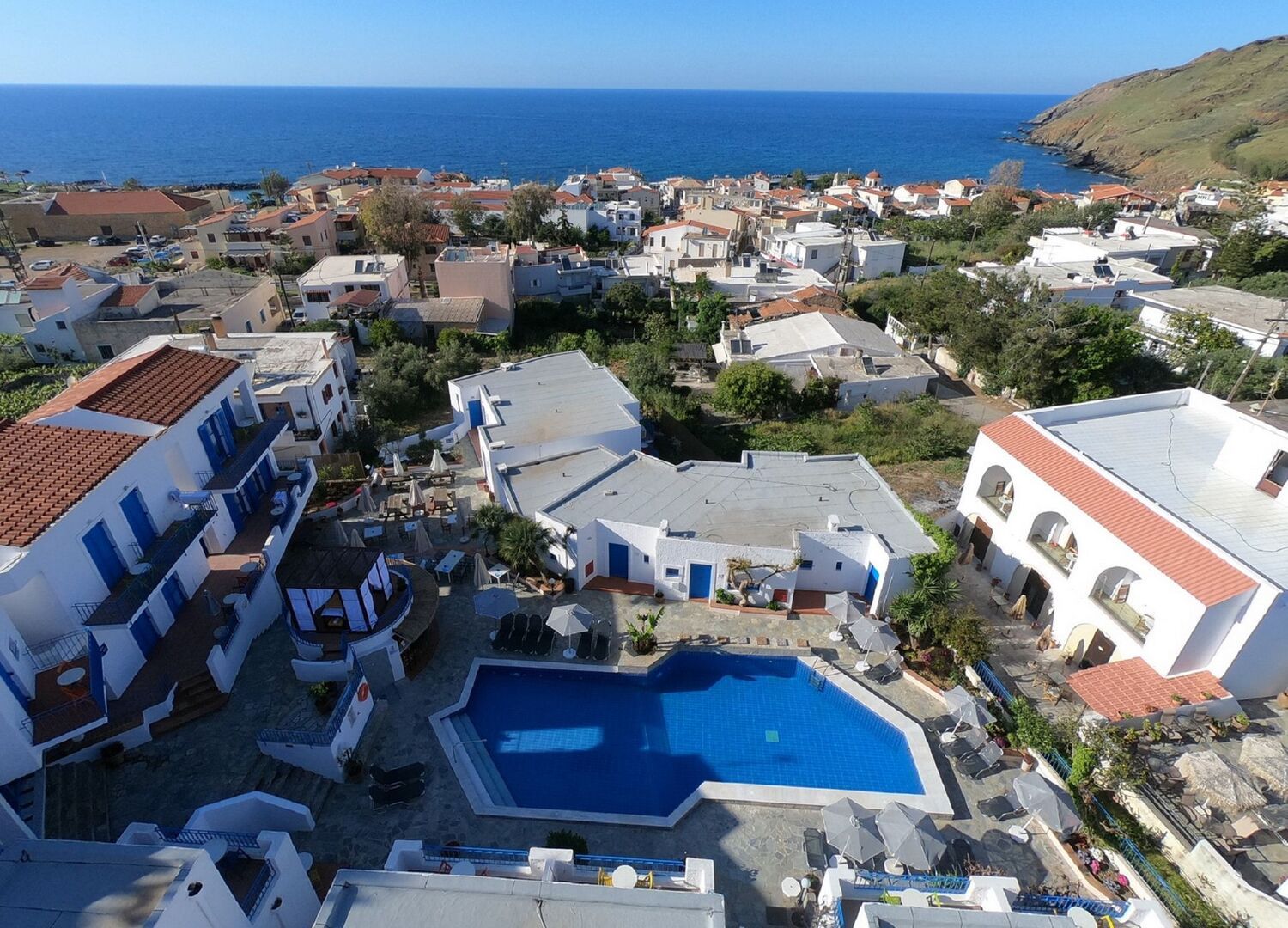 Absolutely brilliant little hotel, very clean rooms and lovely atmosphere. Everything you need within the hotel is accessible in about 20 seconds (gym, pool, bar, dining area). Full of lovely and extremely friendly and genuine staff, the service was top tier and the staff were people you could actually have fun with and talk to. They also have live music nights a couple times a week which are great fun, special shout out to Dimitris for his singing and George’s artistic dance rendition of Tom Jones. Will be coming back next year without a doubt!!