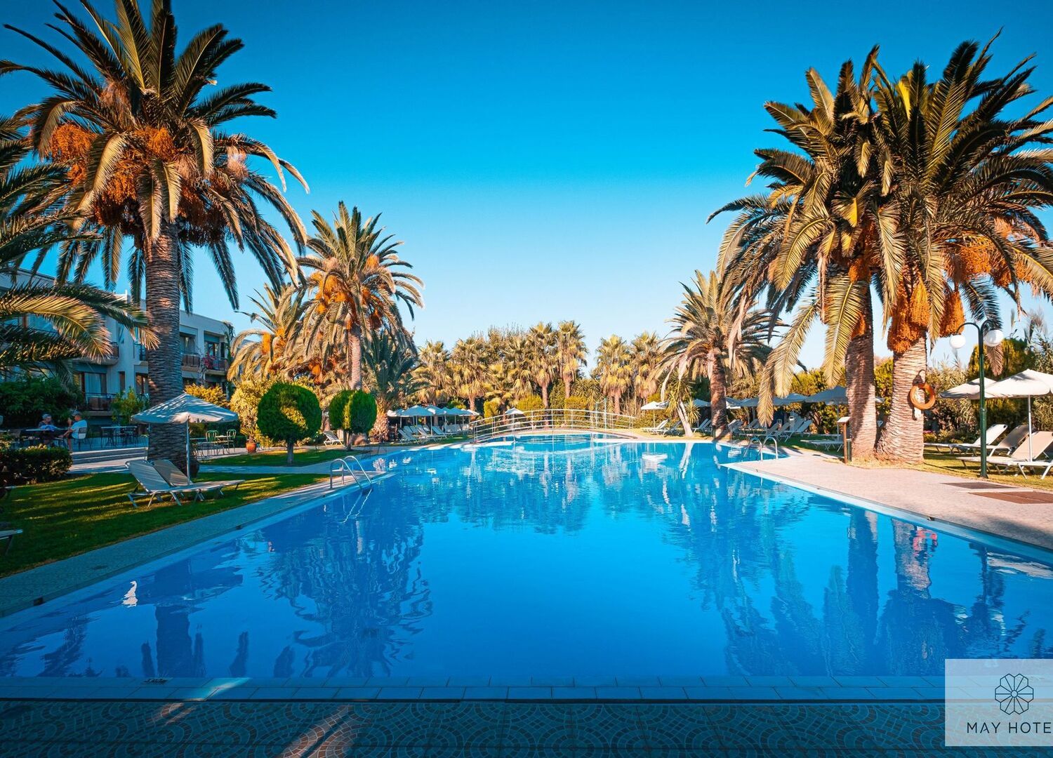 The May Beach Hotel Rethymno is a charming resort hotel located in the suburb of Missiria, just 200m from the longest sandy beach on the island of Crete. The modern architecture of the hotel is surrounded by vast gardens with palm trees providing shade. With 76 modern-furnished rooms and a range of facilities, guests of all ages can enjoy a friendly and family-oriented atmosphere. The hotel is built on a 10000 sqm land with only 10% occupied by the three-level building, while the remaining 90% is a well-maintained garden housing all hotel facilities. Located 4km outside of Rethymnon city, the May Beach Hotel Rethymno offers an idyllic holiday experience that keeps guests coming back year after year.