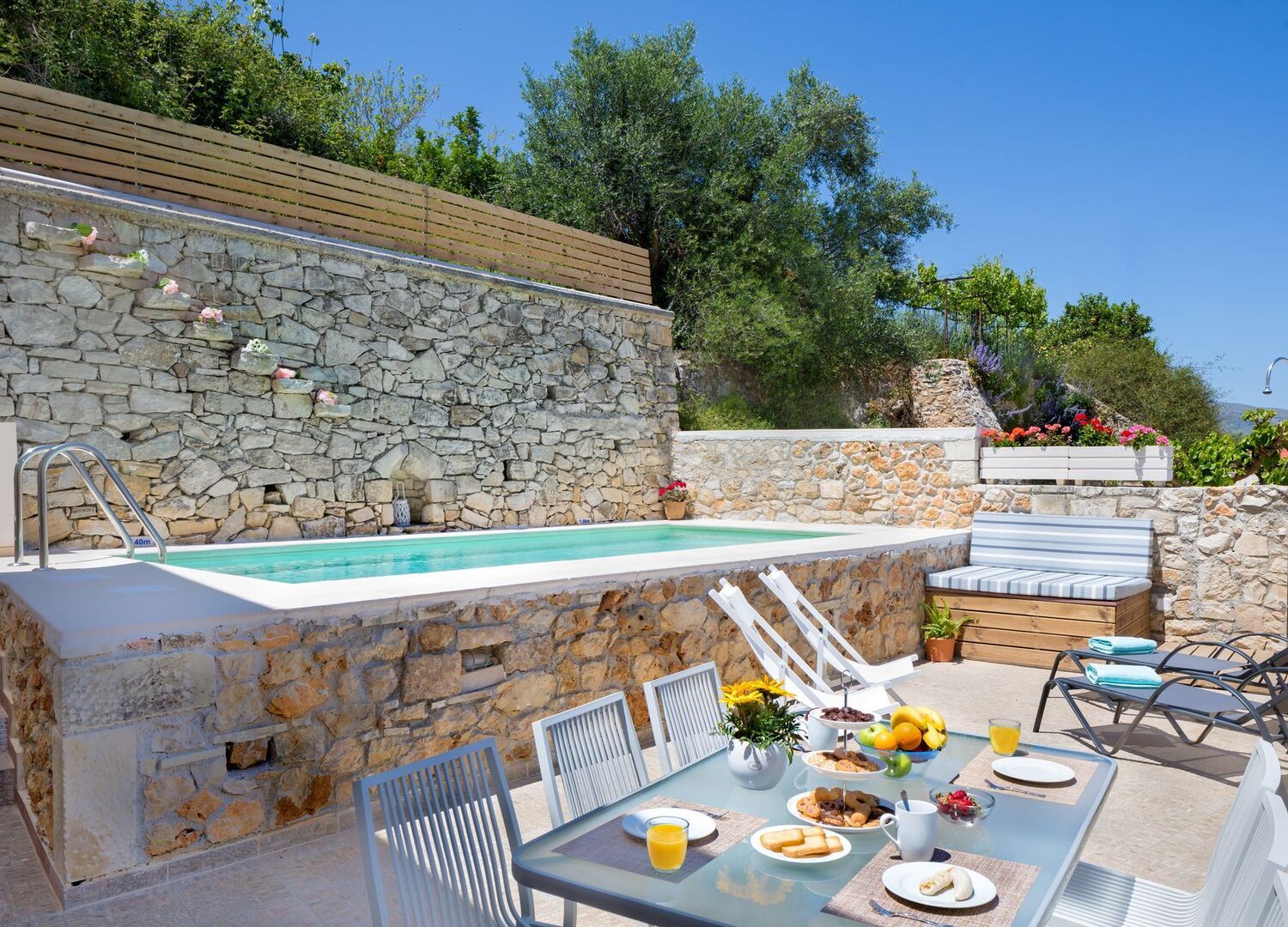 The private heated jacuzzi in each villa offers you relaxation and a romantic and unforgettable holiday experience and the private pool in Villa Aladanos moments of joy and romance.