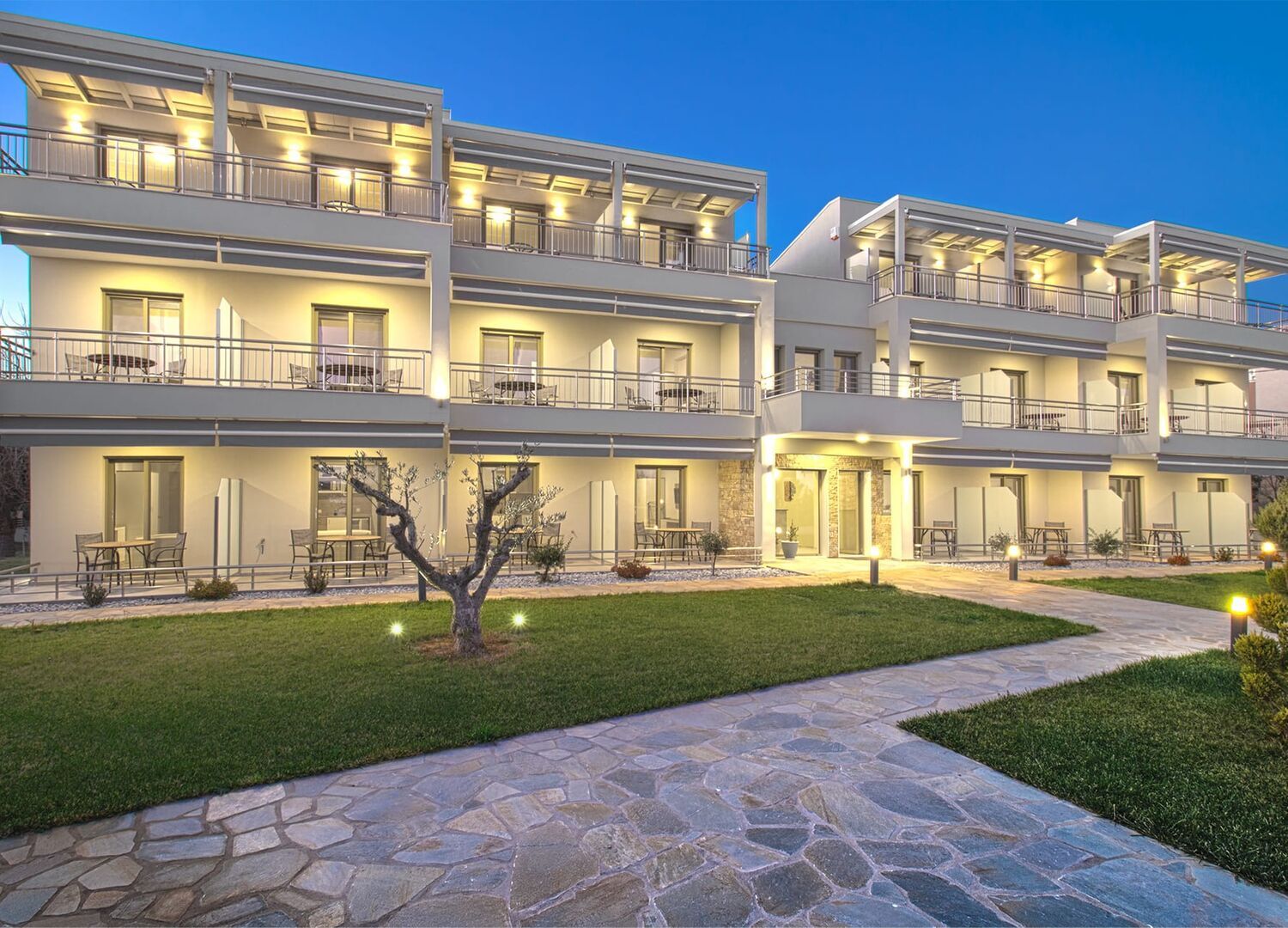 Oliva Suites is a new accommodation building in Nikiti Halkidiki offering rooms for families and couples. All rooms have a garden view and some have a landscape view of the town hills and the sea. It is located within close proximity to the main beach of Nikiti, approximately 5-10 minutes on foot. Moreover, the most popular beaches of Halkidiki are within 10 - 15 minutes by car. It is also convenient in terms of food and drink, as the most popular local supermarket is nearby about 1 minute on foot.