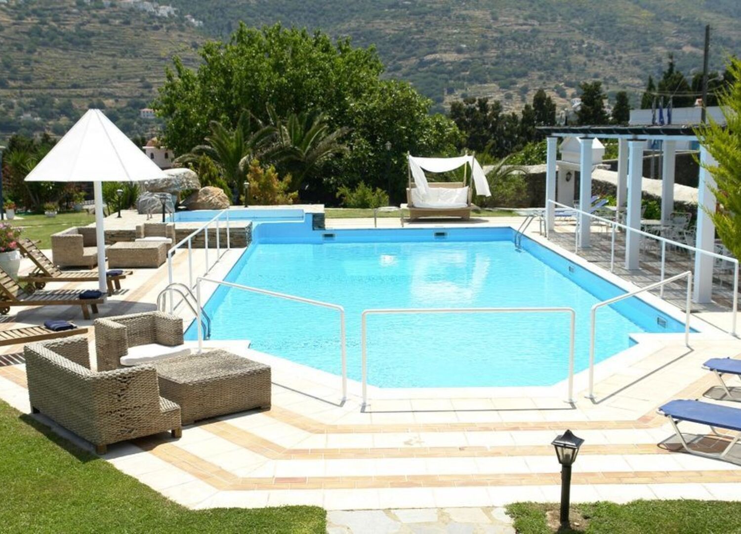 Start your day sunbathing by the pool or with a game of tennis and then visit the nearby taverns, cafés, bars and clubs, accessible from the picturesque main street. Andros Chora is also world famous for its museums and gallery of modern art.