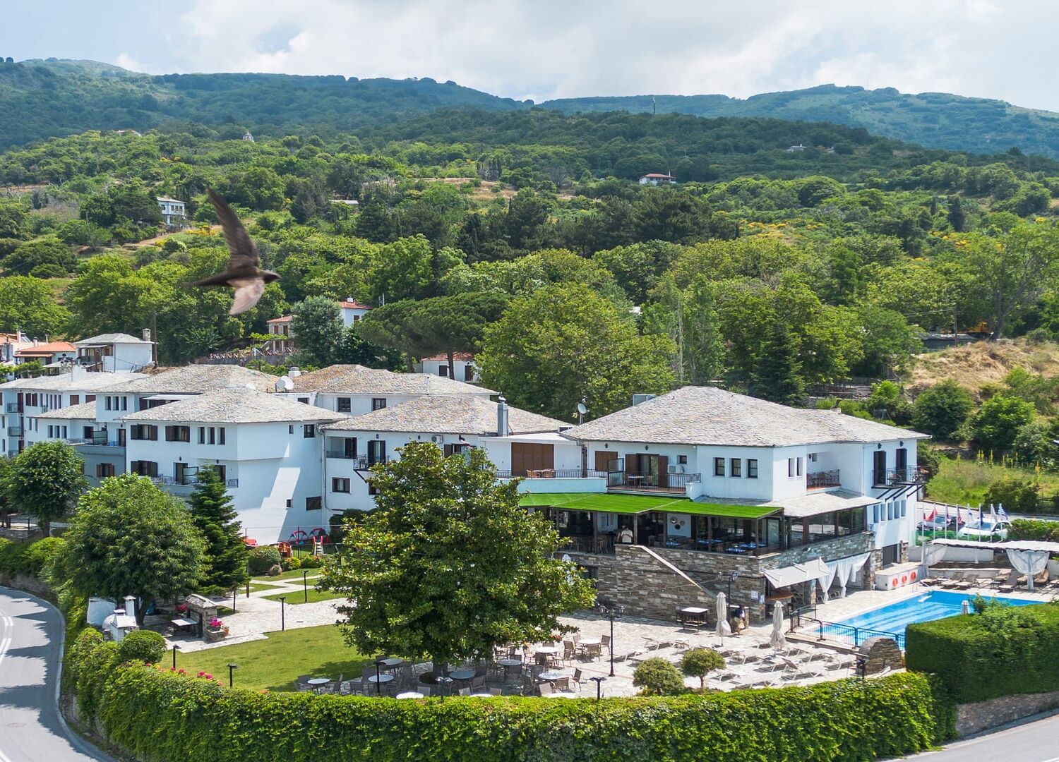 The Portaria Hotel  has been built to combine respect for the traditional architecture of Mt. Pelion with all modern comforts. It is located 12 km from Volos, 12 km from the Ski centre of Mt. Pelion and only 40 minutes away from the deep blue beaches of East Pelion: Agios Ioannis, Plaka and Papa Nero.