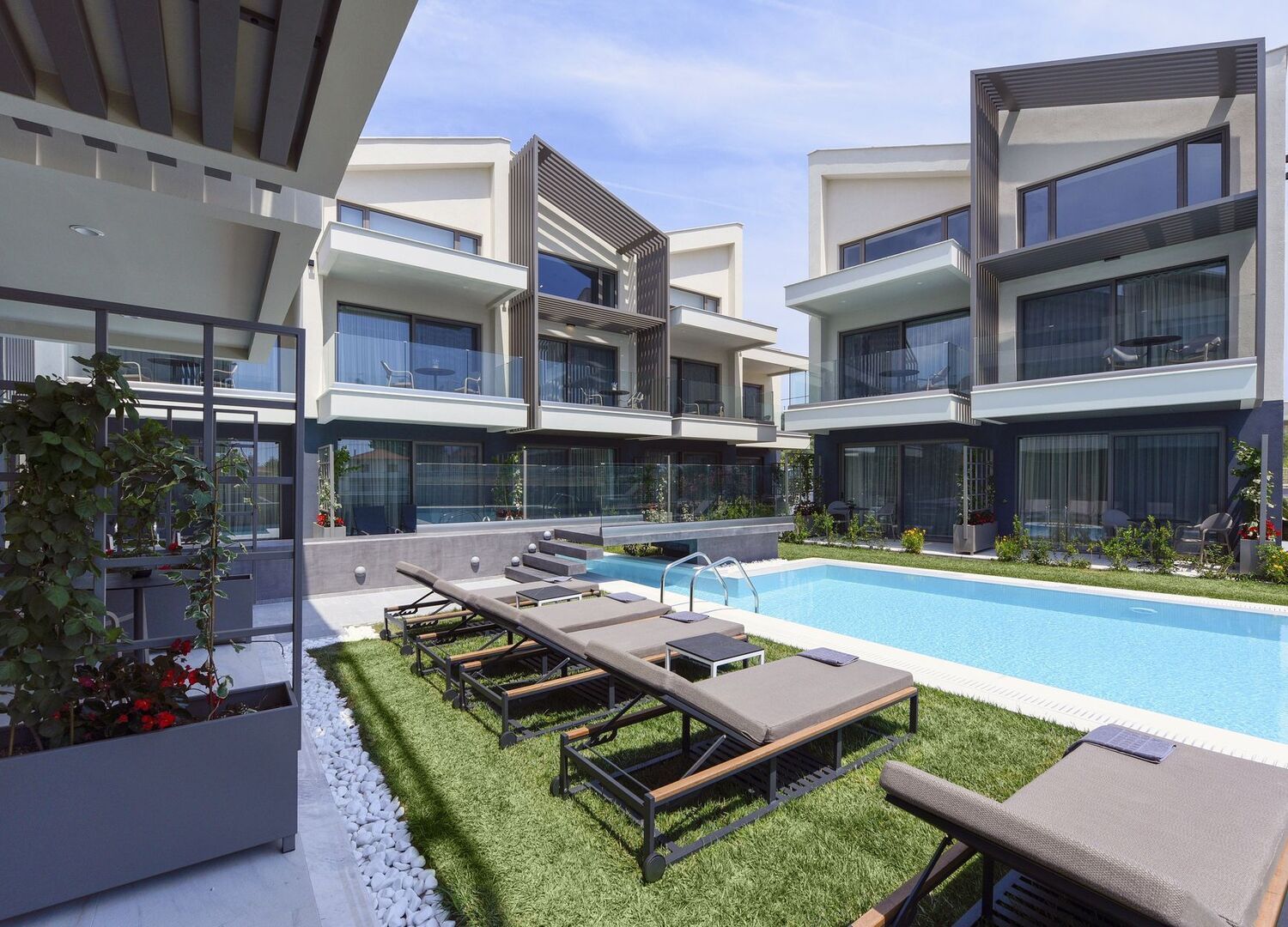 Serenity Suites consist of a complex with newly built and luxurious suites located in Nikiti, Chalkidiki. A new accomodation proposal that emphasises on modern design, high aesthetics and comfort. The Serenity Suites have direct access both to the pool of the complex and to the beautiful beach of Nikiti. We guarantee you dreamy and relaxing holiday in one of the most beautiful places of Chalkidiki.