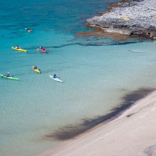 La nostra gita inizia dal vecchio porto di Kardamyli. Prima della partenza, la sua guida la informerà sui dettagli del viaggio, sulle tecniche di pagaiata in kayak e sulle misure di sicurezza. Presto esploreremo la costa a un ritmo di pagaiata rilassato e le guide le sveleranno alcuni segreti della zona. Ogni piccola insenatura nasconde una sorpresa speciale, come grotte marine nascoste, giardini rocciosi, scogliere con formazioni spettacolari, spiagge sabbiose e di ghiaia nascoste. La prospettiva del fondale marino dal kayak è unica. Può vedere attraverso l'acqua cristallina la vita marina e, se è fortunato, una tartaruga marina che nuota sotto il suo kayak. Una delle attrazioni principali di questo viaggio è la visita alla Grotta Azzurra. Un fenomeno naturale spettacolare in cui la luce del sole, passando attraverso una fessura nella grotta, riflette sul fondo del mare un colore acquamarina. Una nuotata nella grotta è un'esperienza da non perdere e da vivere per tutta la vita. Durante il tragitto, visiteremo le piramidi di roccia che emergono dal mare, con la possibilità per i più audaci di provare il cliff diving. A metà strada faremo una sosta rilassante per nuotare, fare snorkeling e per gustare un picnic fatto in casa a base di fresche prelibatezze locali. Dopo il pranzo, torneremo al punto di partenza per concludere una giornata straordinaria sulla costa del Mani.