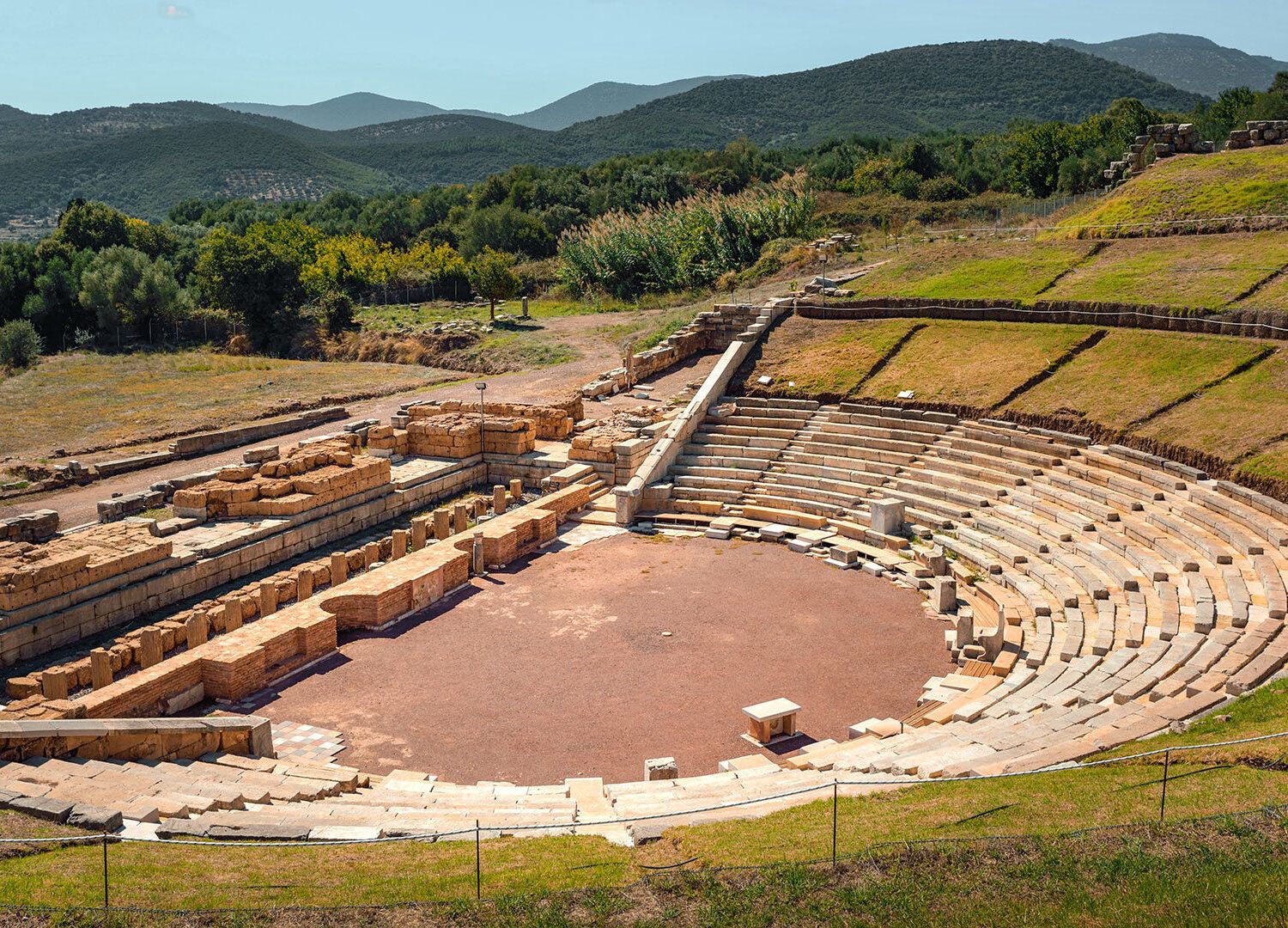 Fino a quando questa valle lussureggiante è stata scavata alla fine degli anni '80, avevamo solo gli scritti dello storico Pausania (che l'ha visitata nel 155-160 d.C.) per andare avanti come principale riferimento all'antica Messene. Ora possiamo vedere con i nostri occhi ciò che egli ha visto della città, che era al suo apice nel IV secolo a.C. quando finì il dominio spartano. Il fatto che nessuna città successiva sia stata costruita sui suoi resti significa che ora possiamo godere di uno dei siti archeologici più completi della Grecia, tra cui un teatro da 10.000 posti, uno stadio, un ginnasio, porte, templi ed edifici progettati in una pianta ippodamea (griglia). Le mura che si vedono verso il Monte Ithome erano originariamente lunghe 9 km.