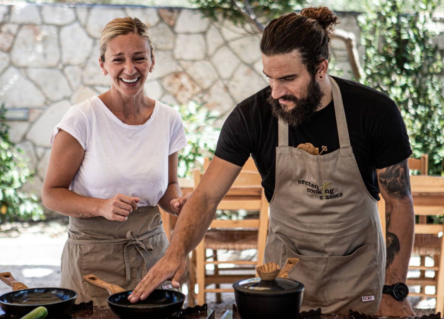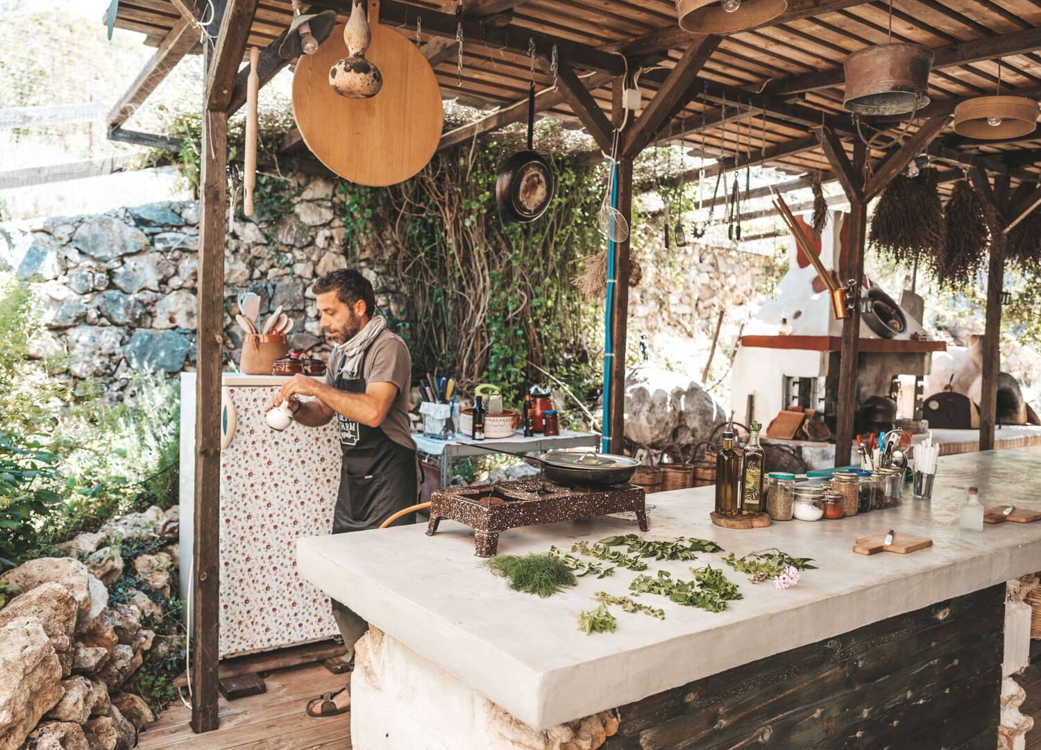 Una cosa è gustare l'incredibile cibo di Chania e un'altra è imparare i segreti della cucina mediterranea dalle persone che la conoscono meglio. Prenotare un corso di cucina ti permette di vivere un'esperienza "dalla fattoria alla tavola" con alcuni degli ingredienti più puri che tu possa mai maneggiare. Ci sono molti fornitori che offrono corsi nei villaggi e persino nelle fattorie (come l'Olive Farm di Litsarda e la Neroulakia Farm di Stironas) dove potrai raccogliere i tuoi prodotti per primi, mentre Fabrika ti introdurrà a ricette come le seppie con i finocchi, le lumache con il grano schiacciato, le verdure ripiene, i dolmadakia (foglie di vite ripiene) e i kalitsounia (torte di formaggio dolce) in una cucina allestita in un frantoio tradizionale. La Festa cretese, nel villaggio di Maheri, include una passeggiata botanica (si può prenotare tramite il Vamos Village), mentre il Parco e i Giardini botanici di Creta, vicino a Fournes, presenta alberi da frutto, erbe, spezie e piante medicinali e decorative provenienti da Chania e da tutto il mondo.