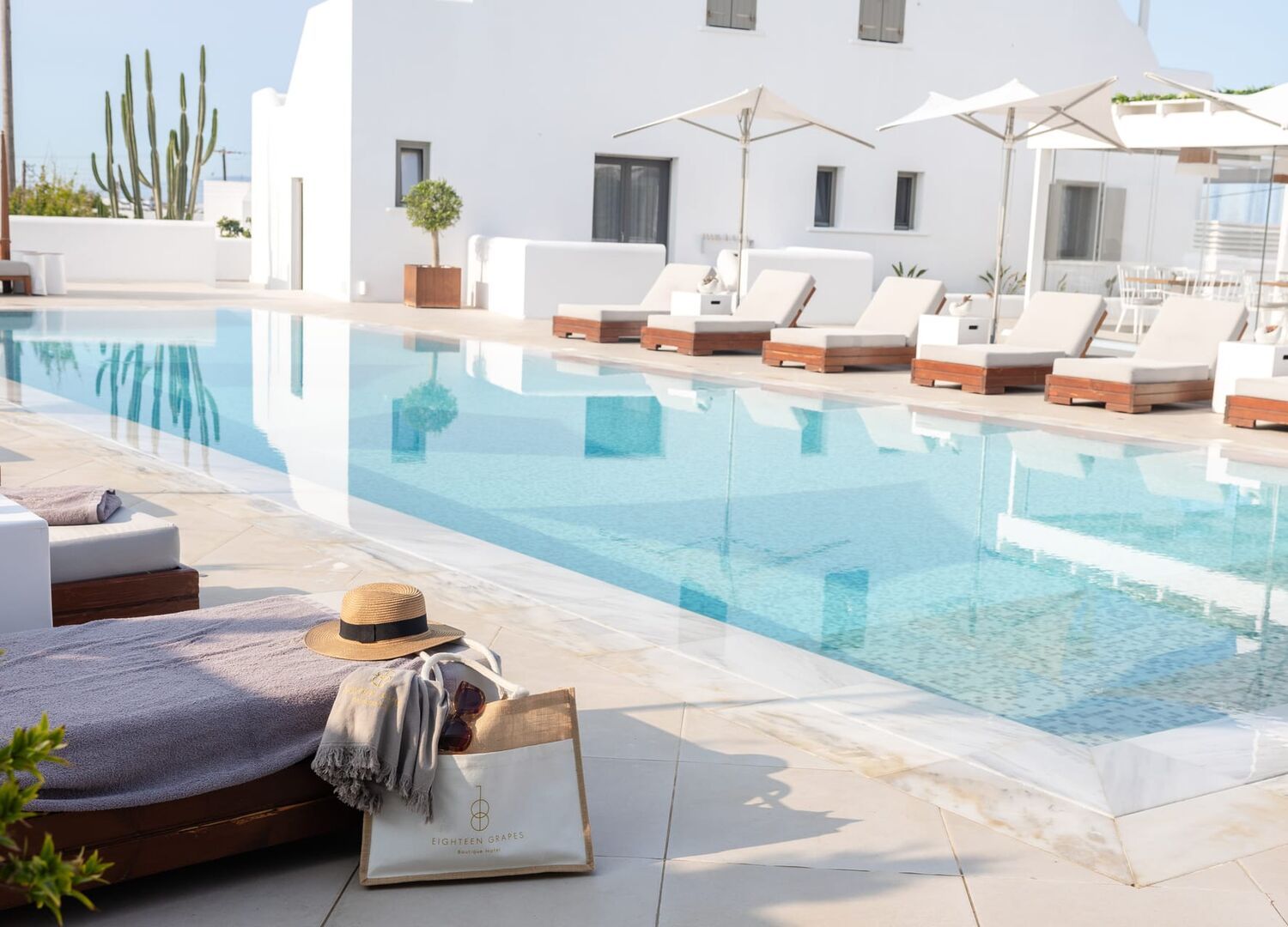 18 Grapes was the highlight of our Greek island hopping trip. The atmosphere is peaceful and intimate, perfect for couples or solo travelers looking for quiet luxury. The pool was never crowded, the cocktails were fantastic, and the sunsets were unforgettable. Our room had a private jacuzzi and overlooked the sea—pure bliss. The location is also excellent, just a short walk from the beach and some great restaurants. Everything about our stay was top-tier, yet warm and welcoming!!