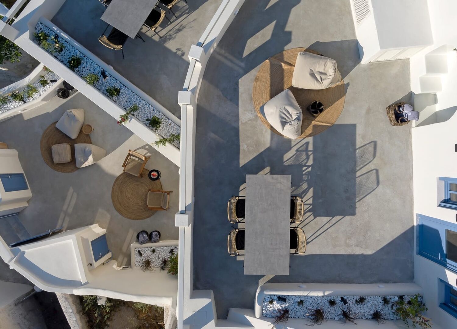 Both the architecture and design of Acave Suites were inspired by the traditional “cave-like Homes” carved in the volcanic rocks that embrace the area’s raw aesthetics in a perfect balance with its whitewashed walls, neutral, earthy color palette and Cycladic charm.