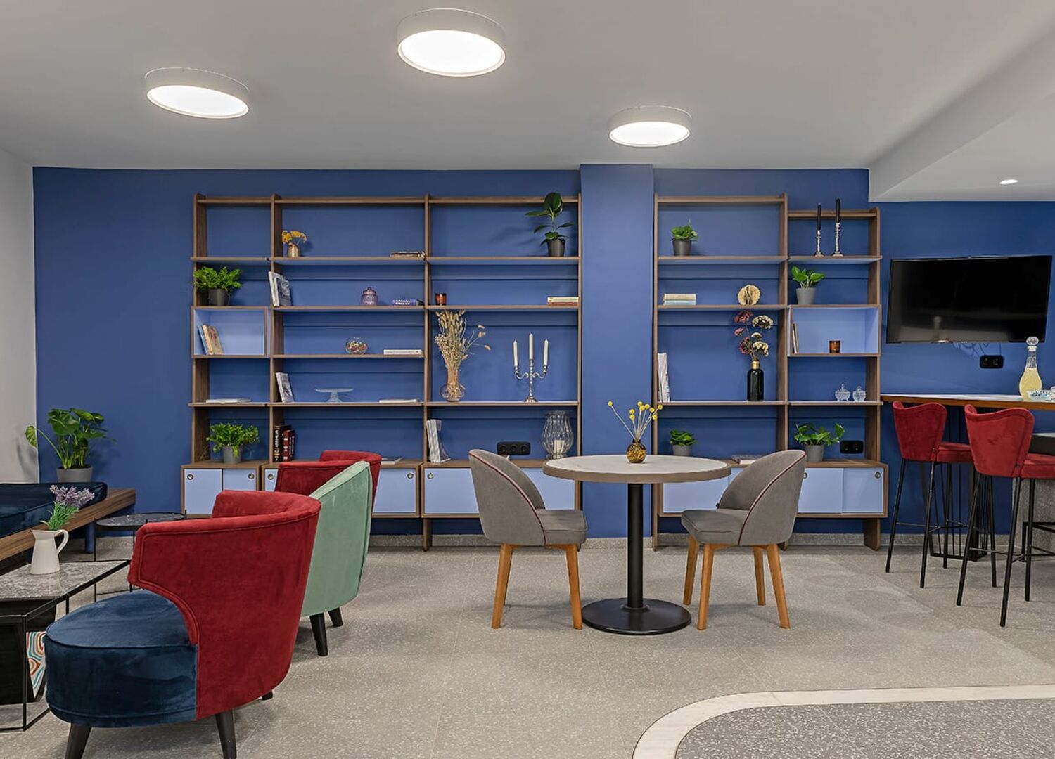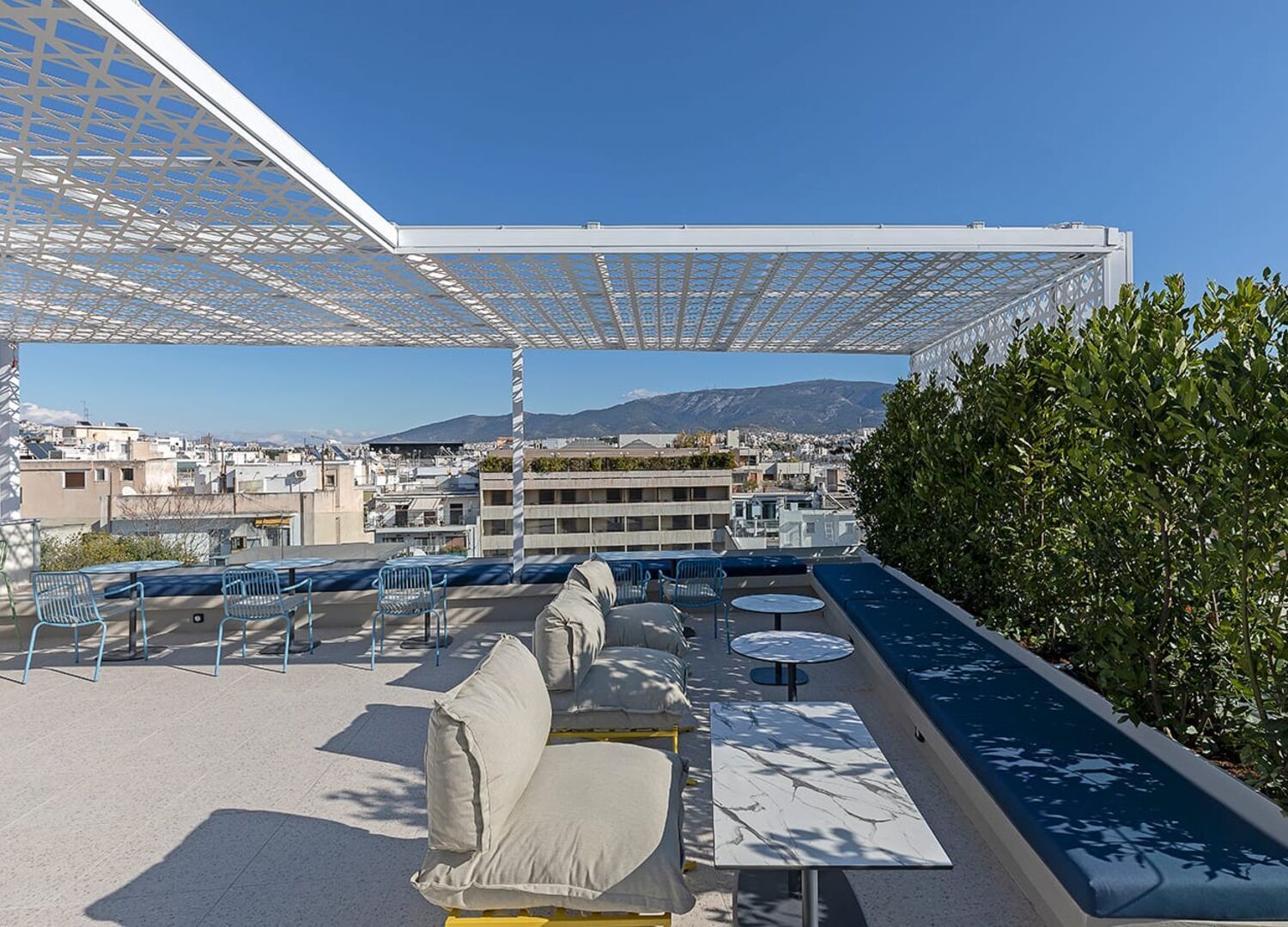 The building was fully renovated in 2020 to become a modern hotel, which would meet the practical & aesthetic desires of a modern traveler, a digital nomad and at the same time make him feel at home. The cozy vintage lounge area in addition with the outstanding Acropolis views from the rooftop, the lending library, the small communal kitchen and the meeting table, all contribute in a way to make our guest feel comfortable in a homey atmosphere.